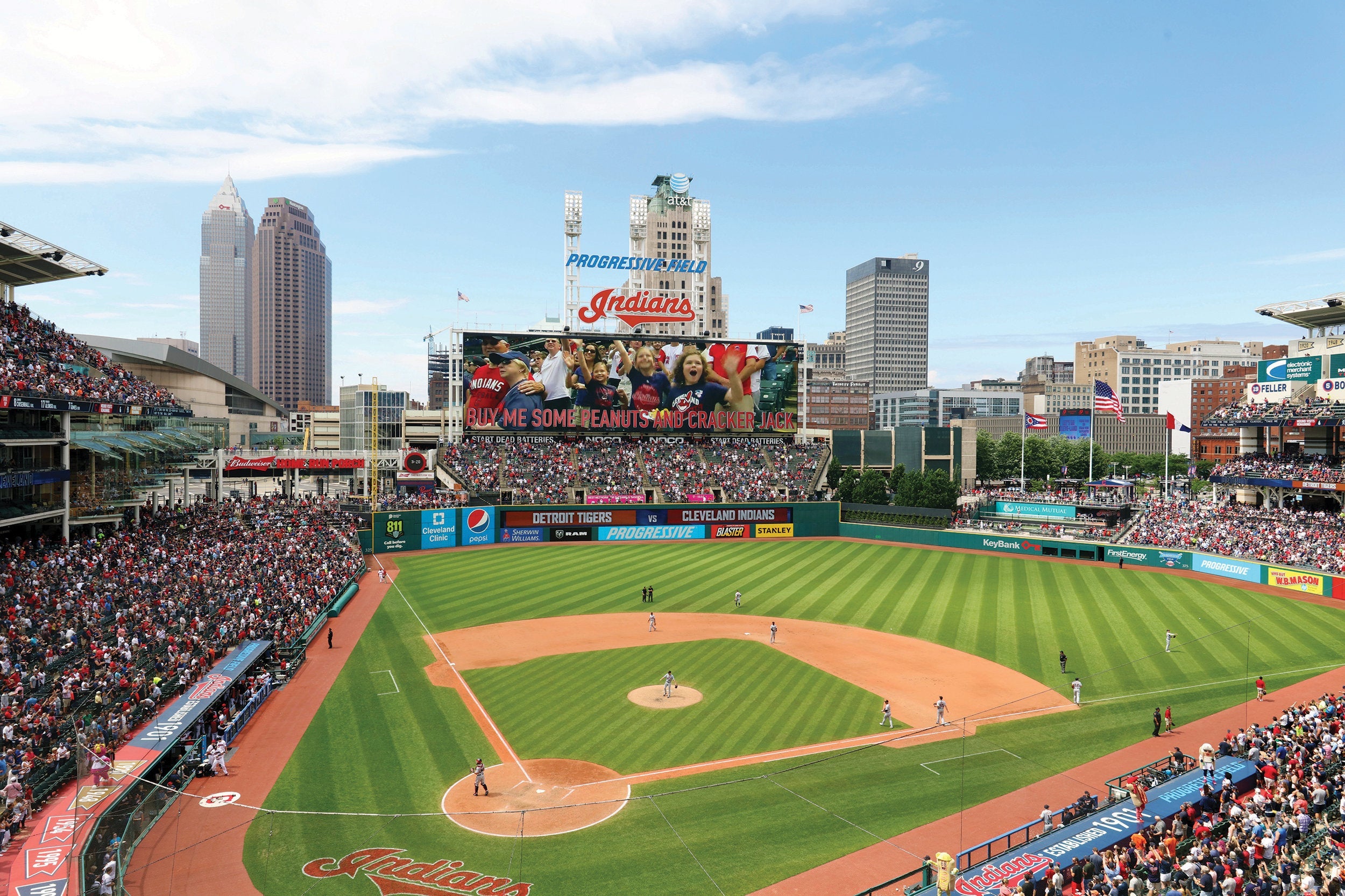 Progressive Field in Cleveland. Cleveland Indians Baseball Great for a piece of wall art. Available as a single canvas at 16″ x 24″ , 24″ x 36″ , or 32″ x 48
