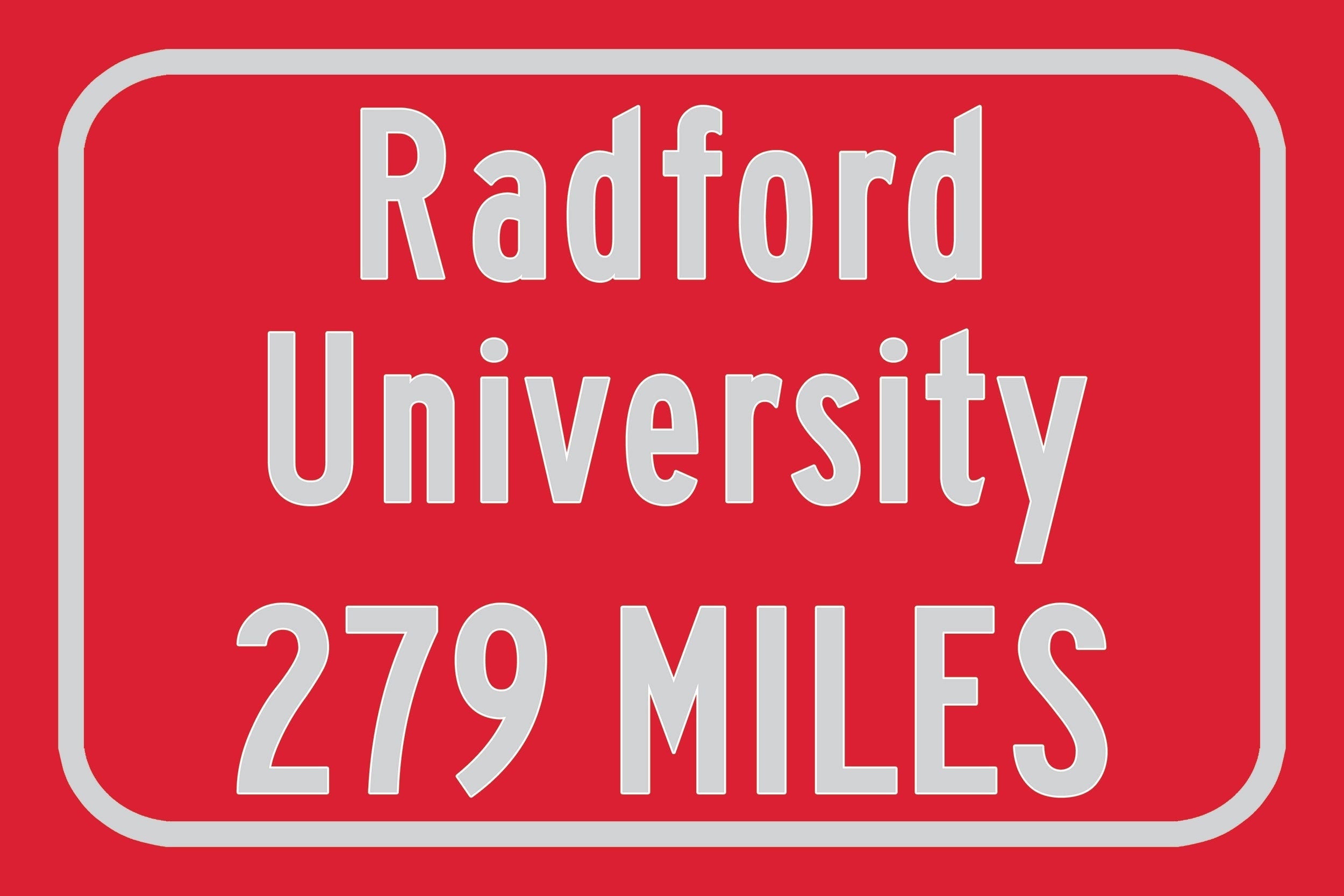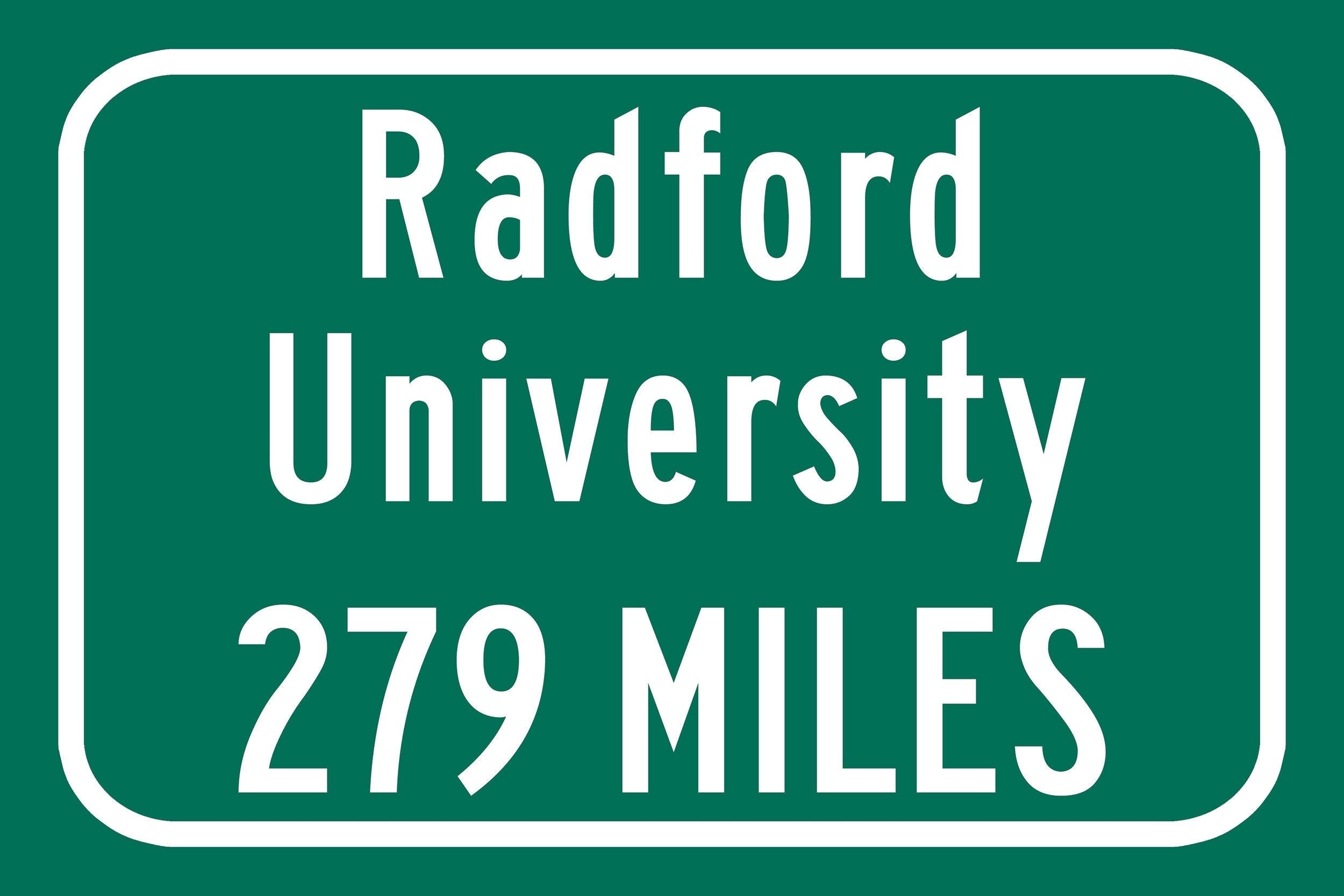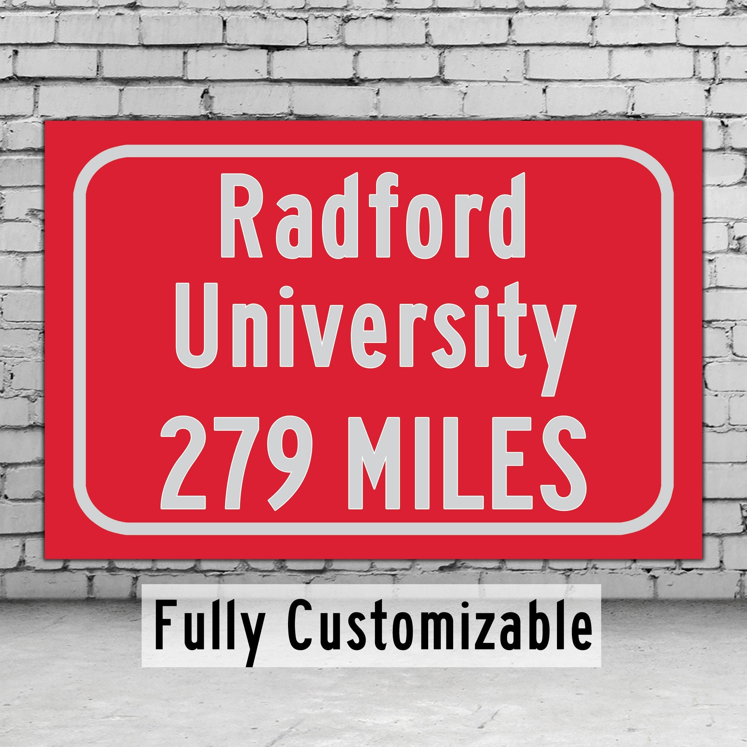 Personalized Highway Distance sign to Radford University/ Radford University sign. Radford University Radford Virginia signs
