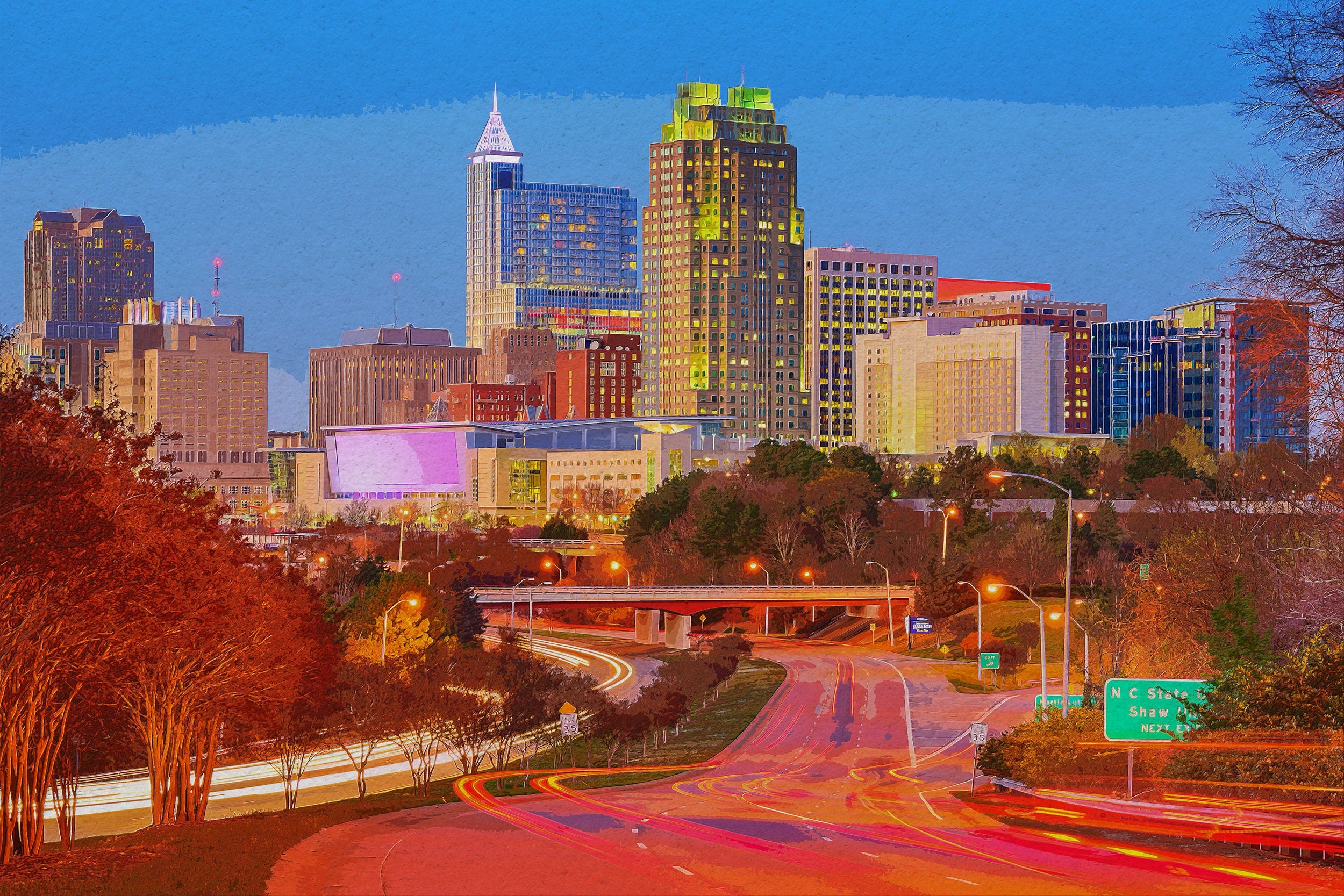 Raleigh watercolor, Raleigh Canvas Print, Raleigh North Carolina watercolor, Raleigh Skyline watercolor, Gift Ideas, Raleigh watercolor