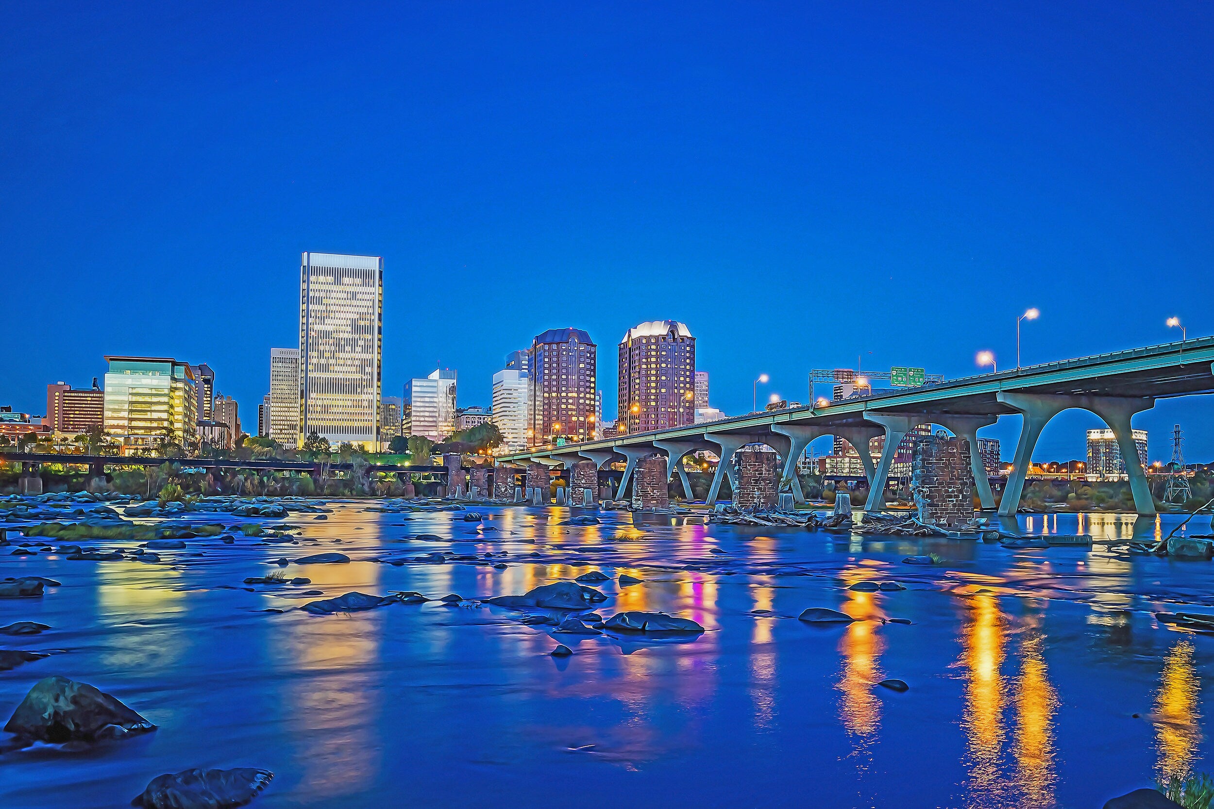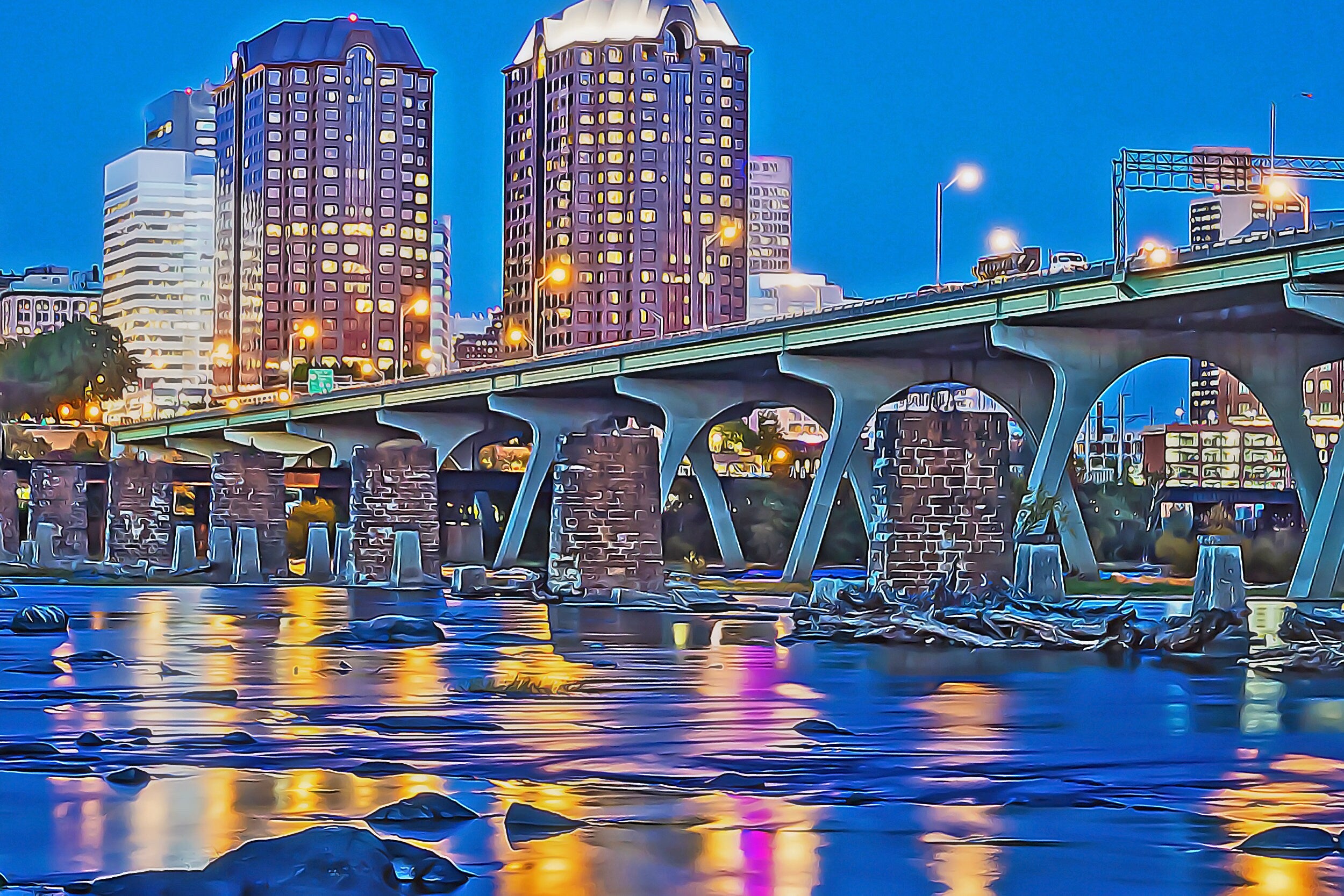 Stunning digital oil painting of the Richmond skyline and the James river. Richmond watercolor.