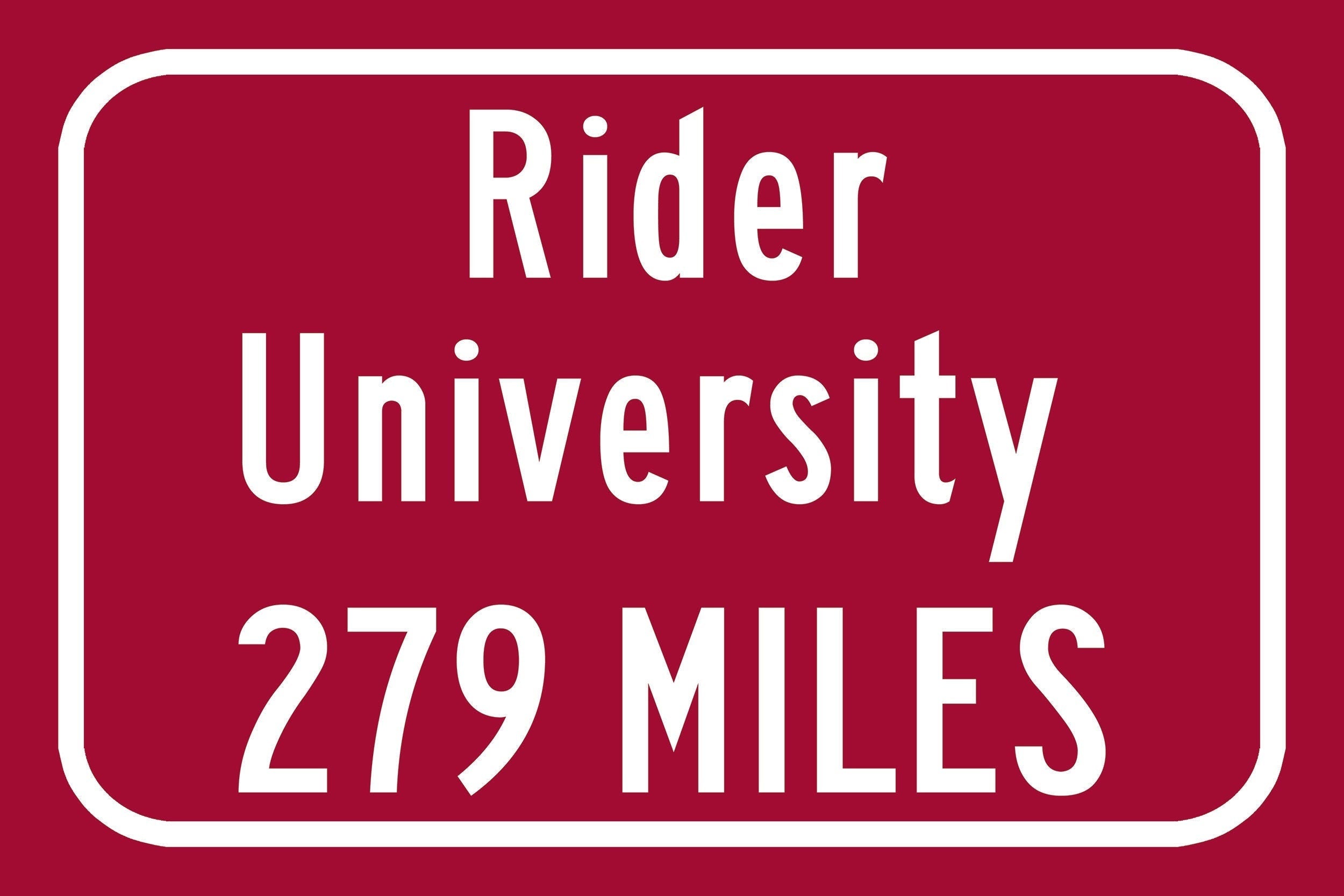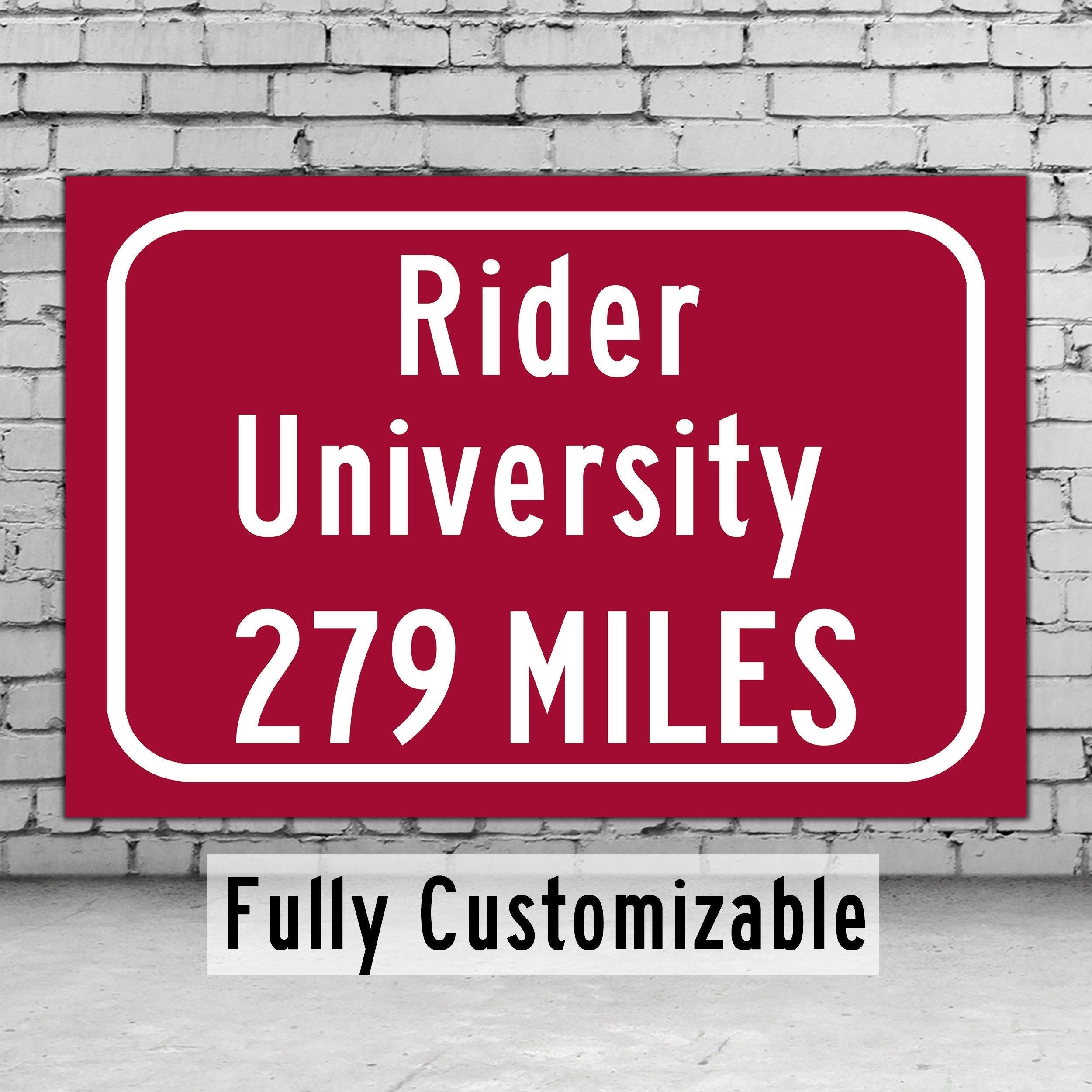 Rider University / Custom College Highway Distance Sign / Rider Broncs / Lawrence Township New Jersey /