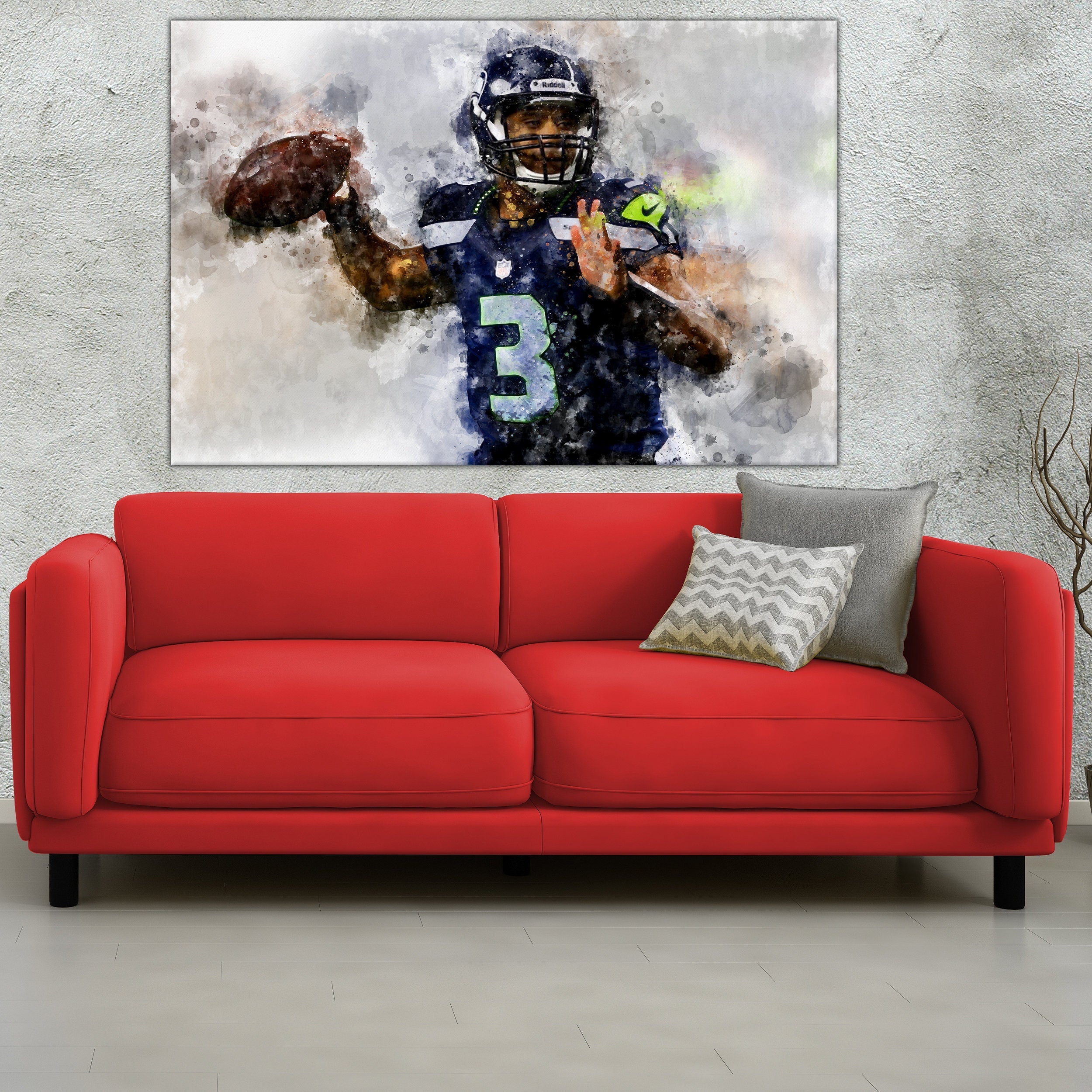 Great for a piece of Russell Wilson wall art. Available in several sizes as an unframed print or a ready to hang mounted canvas
