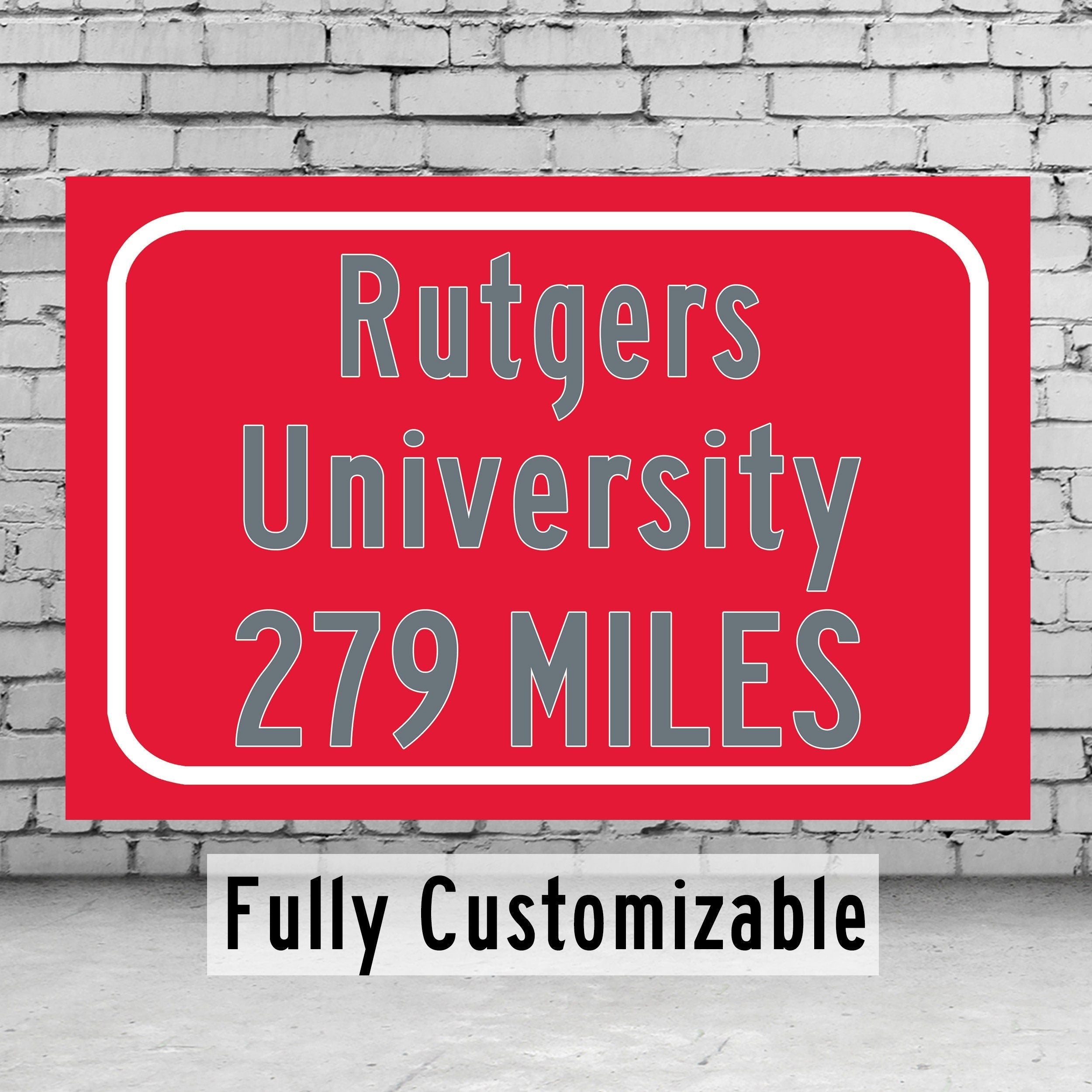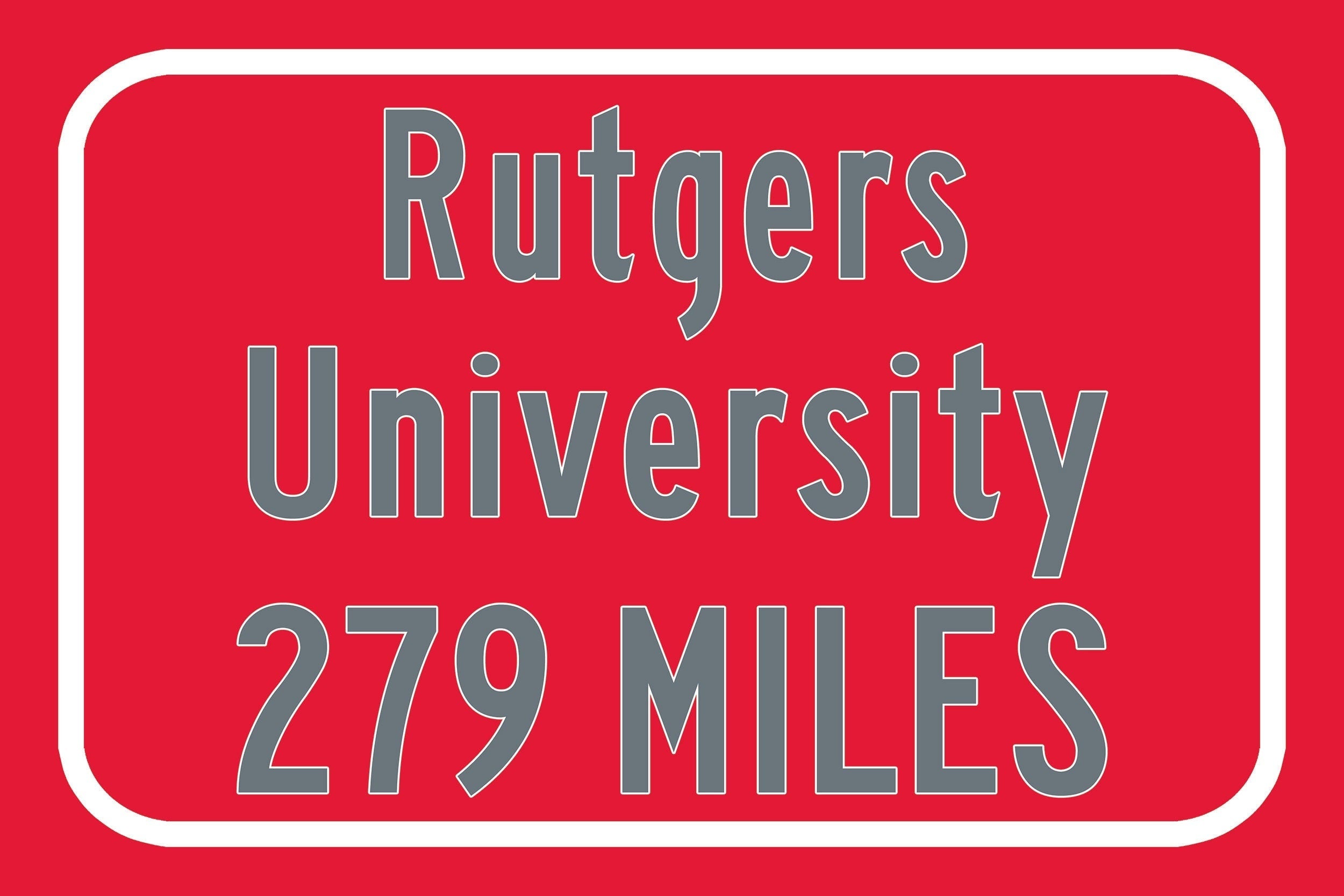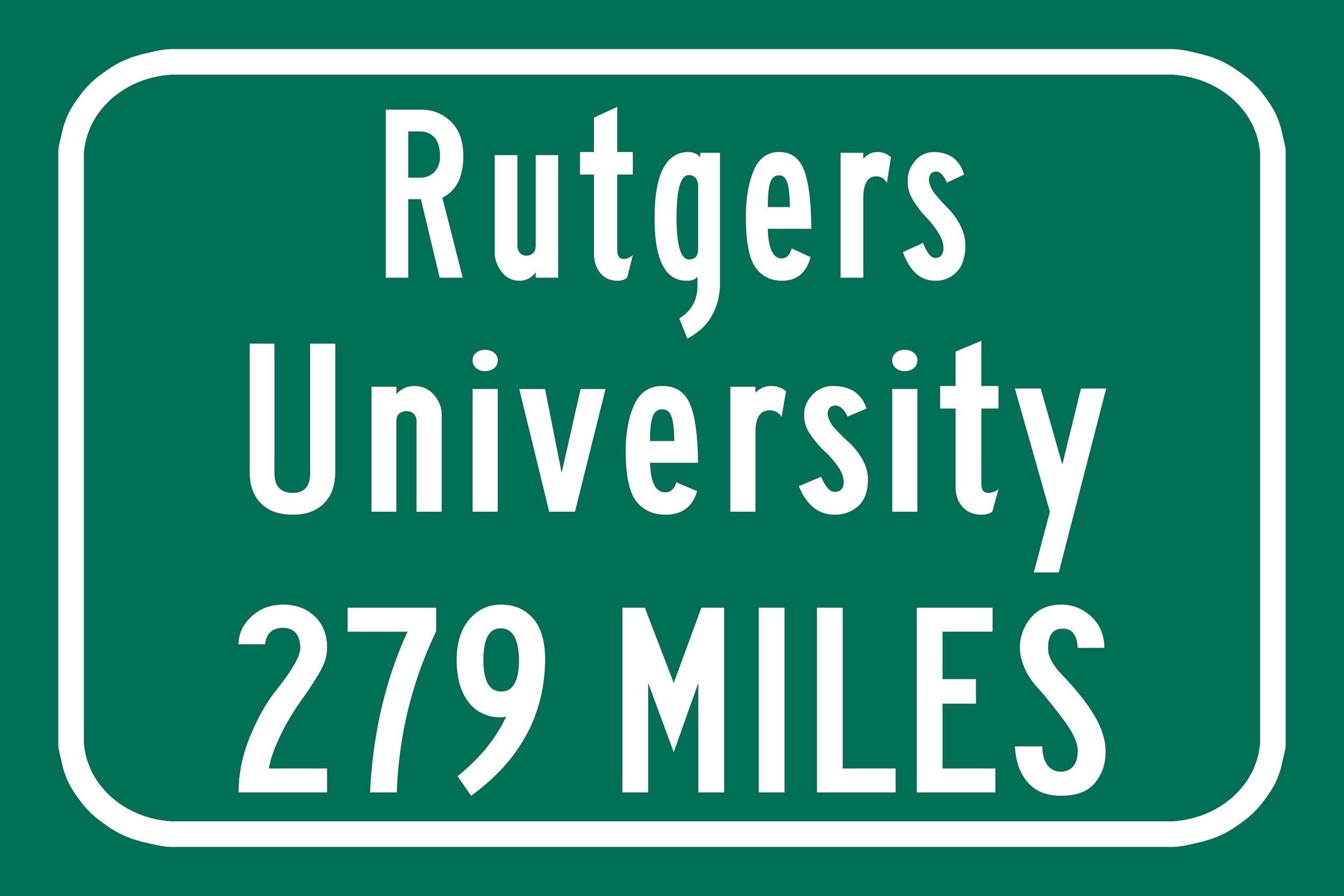 Personalized Highway Distance sign to Rutgers University in New Jersey. Rutgers University Sign