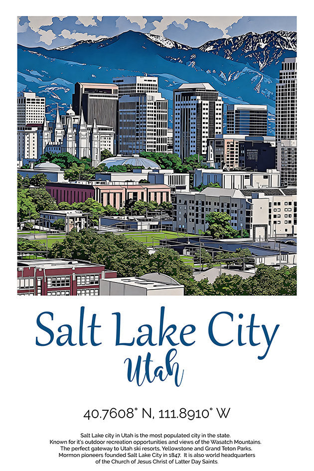 – Beautiful skyline art that captures the iconic landmarks of Salt Lake City