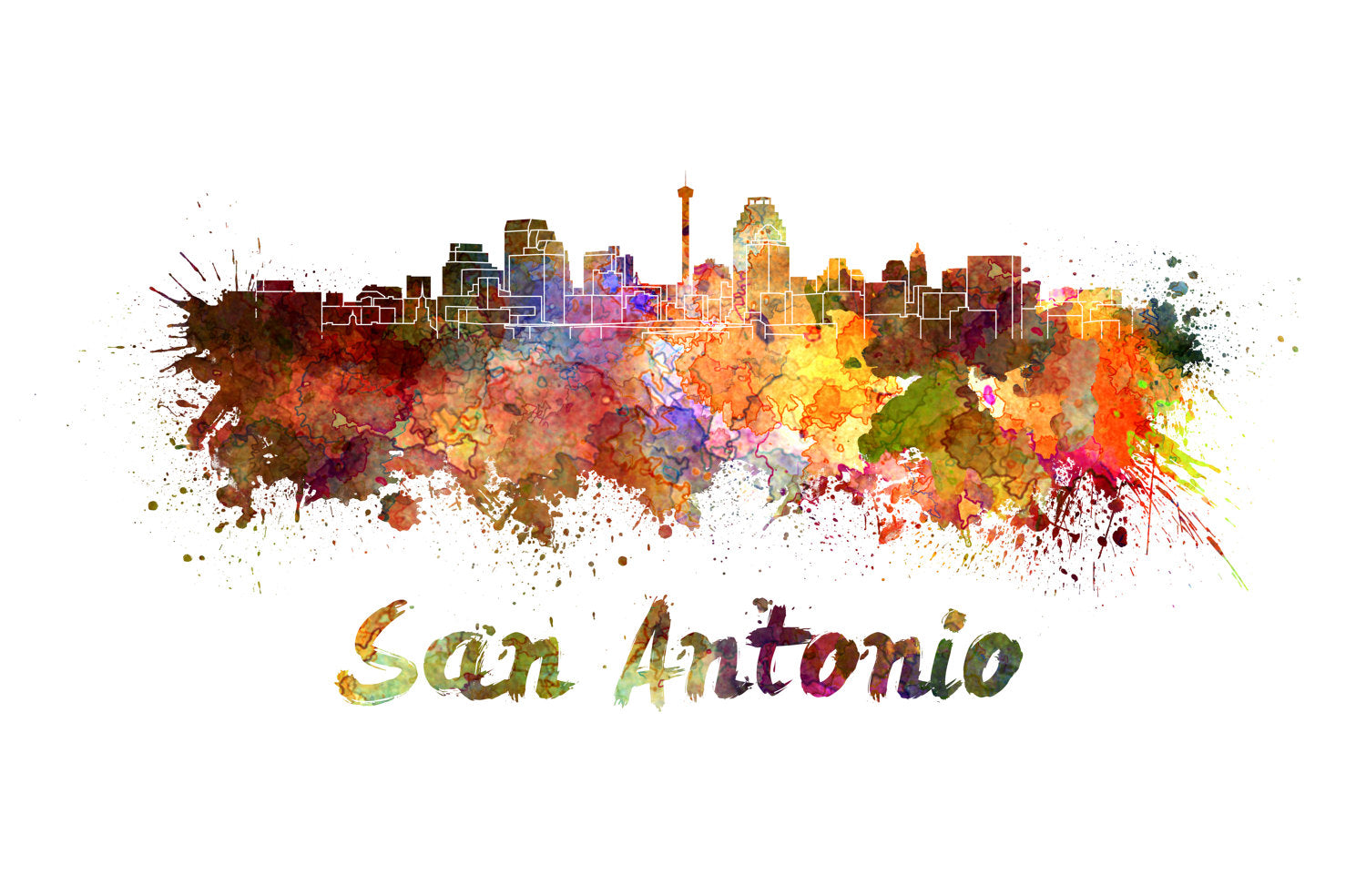 The beautiful skyline of San Antonio Texas on canvas framed and ready to hang. Stunning watercolors that make for the perfect wall decor. The default print comes with the city name. Send us a message if you prefer that the name not be listed on the print