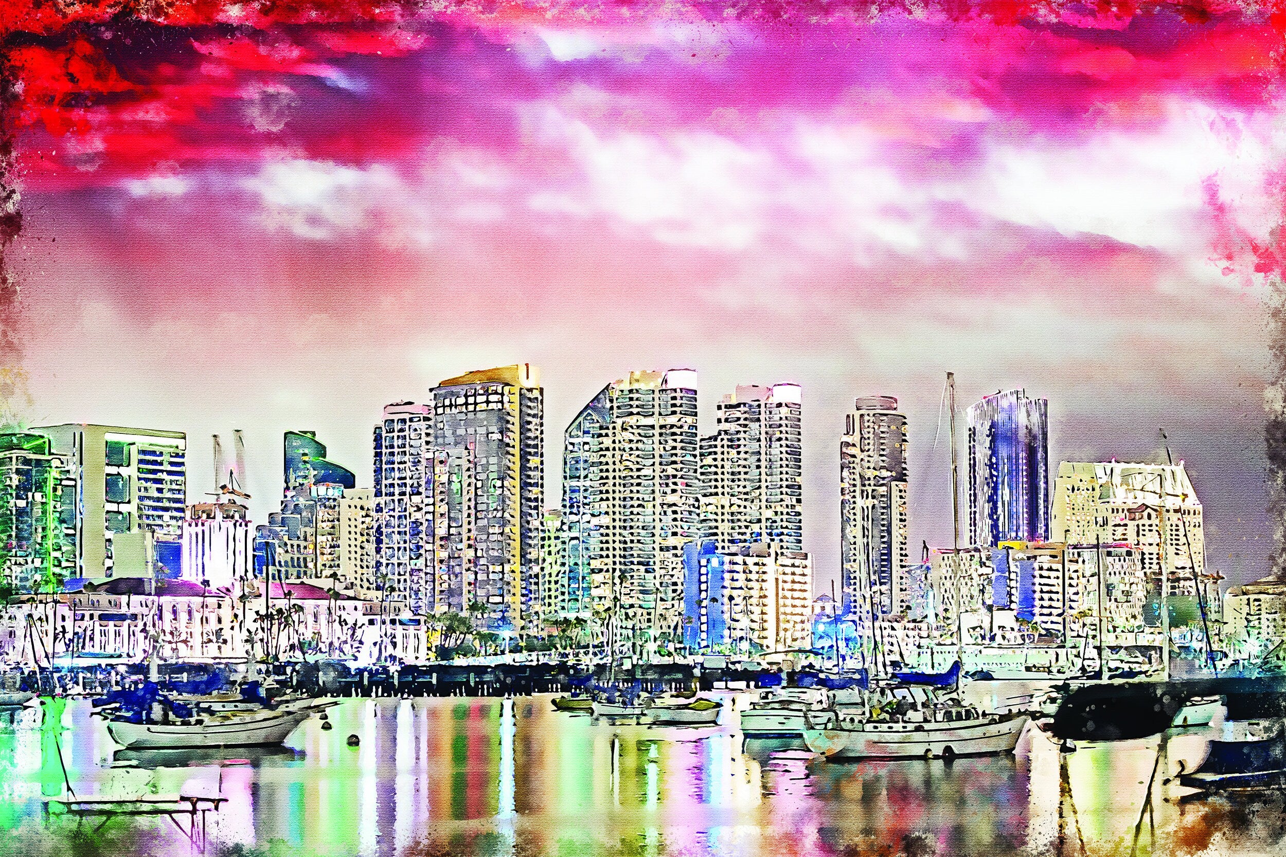 Stunning Photo of the San Diego California skyline. Great for a piece of wall art. Available as a single canvas at 16″ x 24″ , 24″ x 36″ , or 32″ x 48″ or we can make you a special 3 panel work of art or if you prefer, a digital download and you can print it your self. (no physical product sent)
