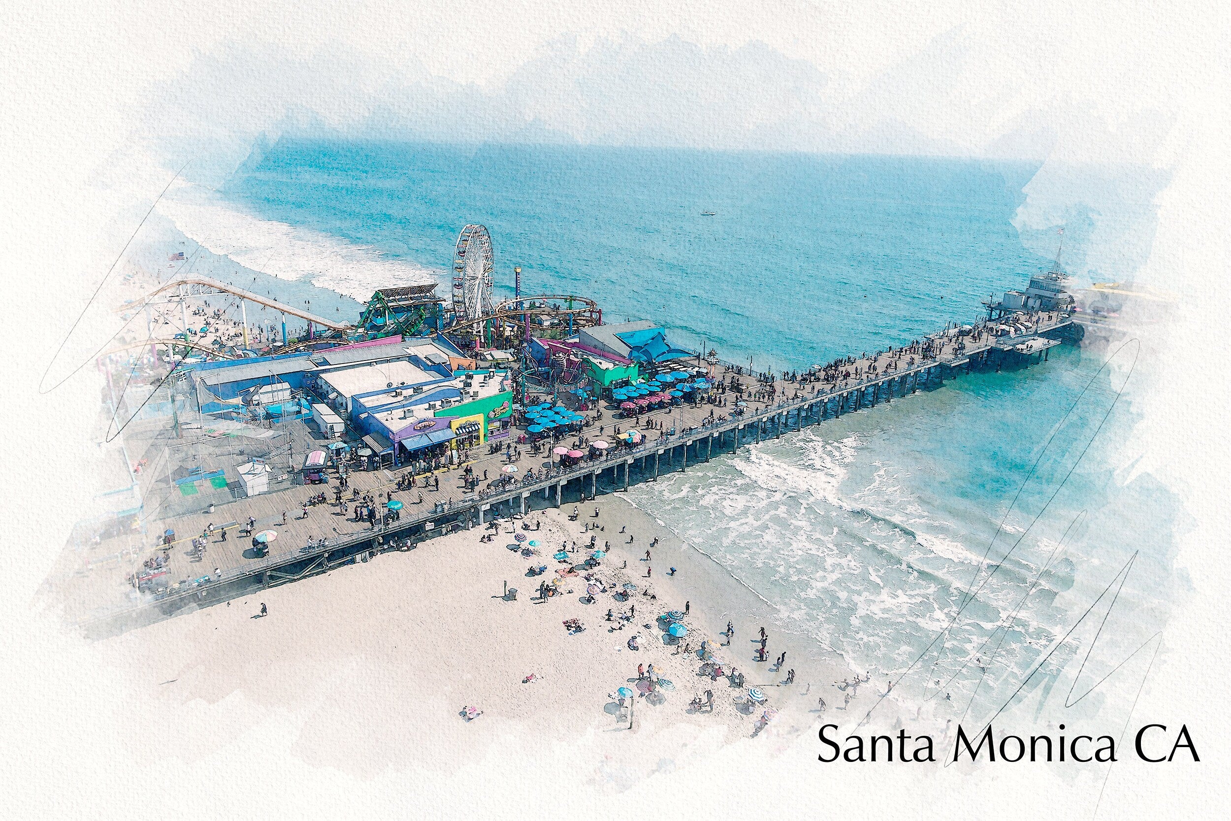 Santa Monica watercolor, Santa Monica wall art, Santa Monica Print