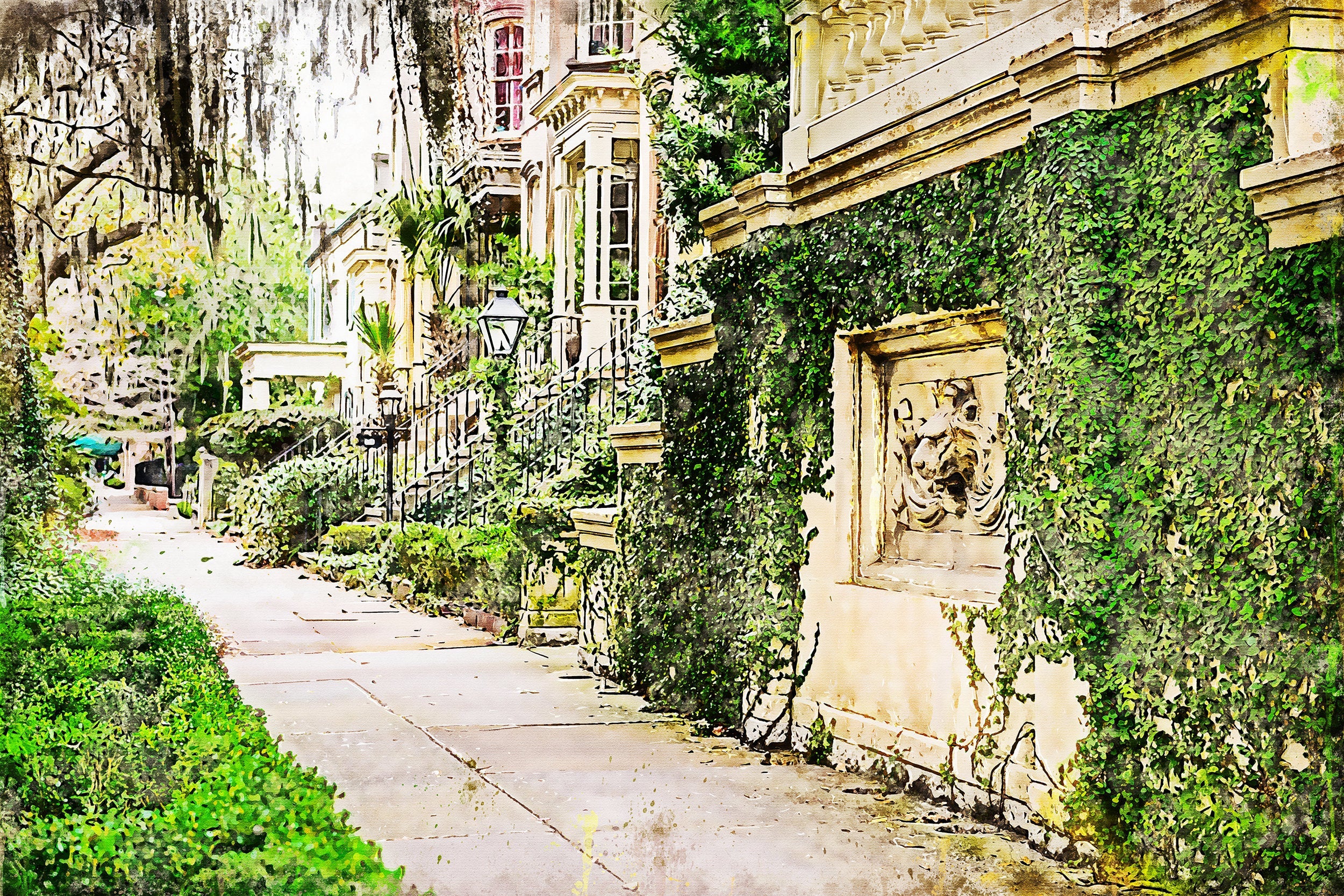 Savannah Georgia Old Historic Homes watercolor canvas, Savannah watercolor Canvas, River Street canvas, Georgia wall art, Southern wall art