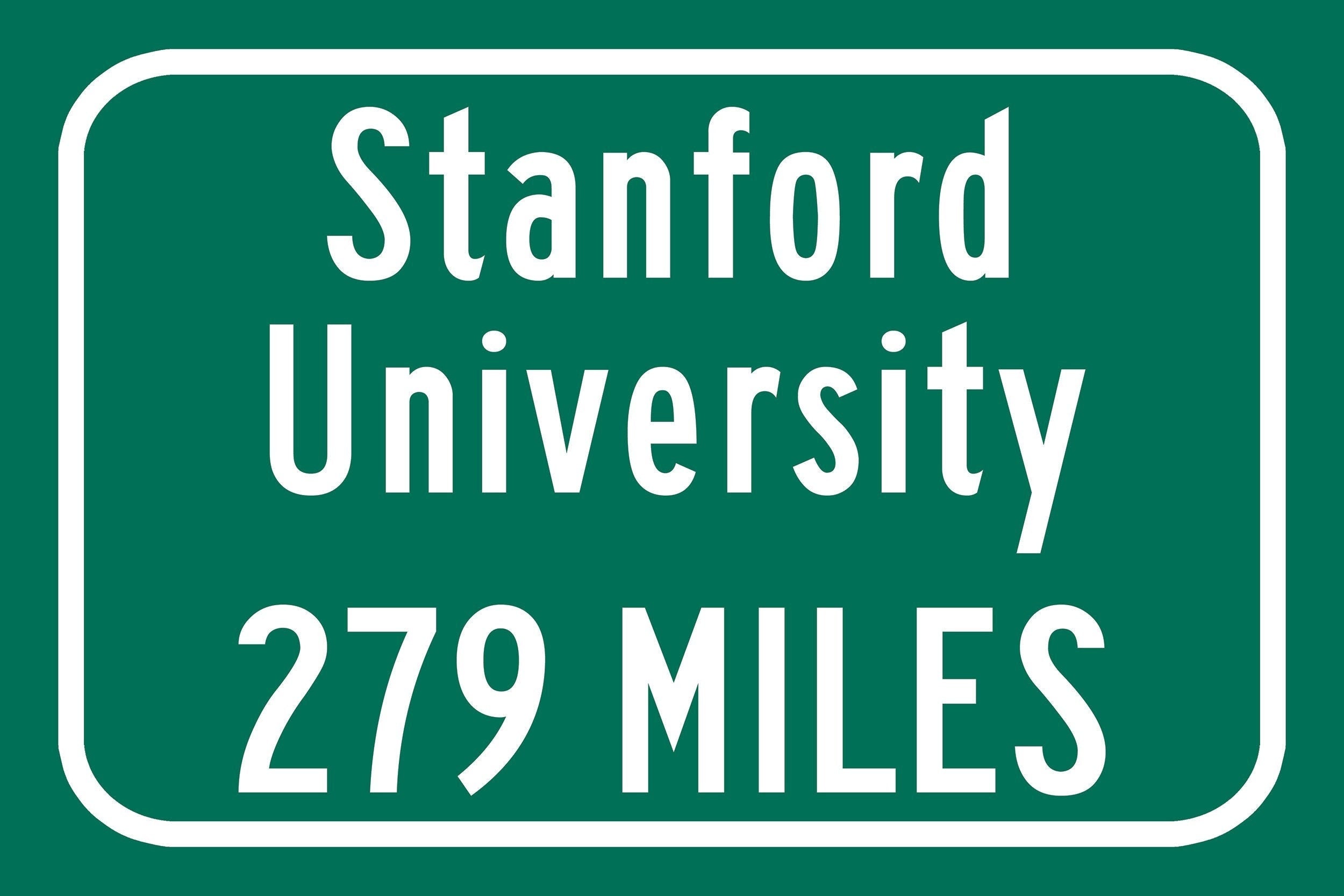 Personalized Highway Distance sign to Stanford University / Stanford Cardinal / Stanford California/