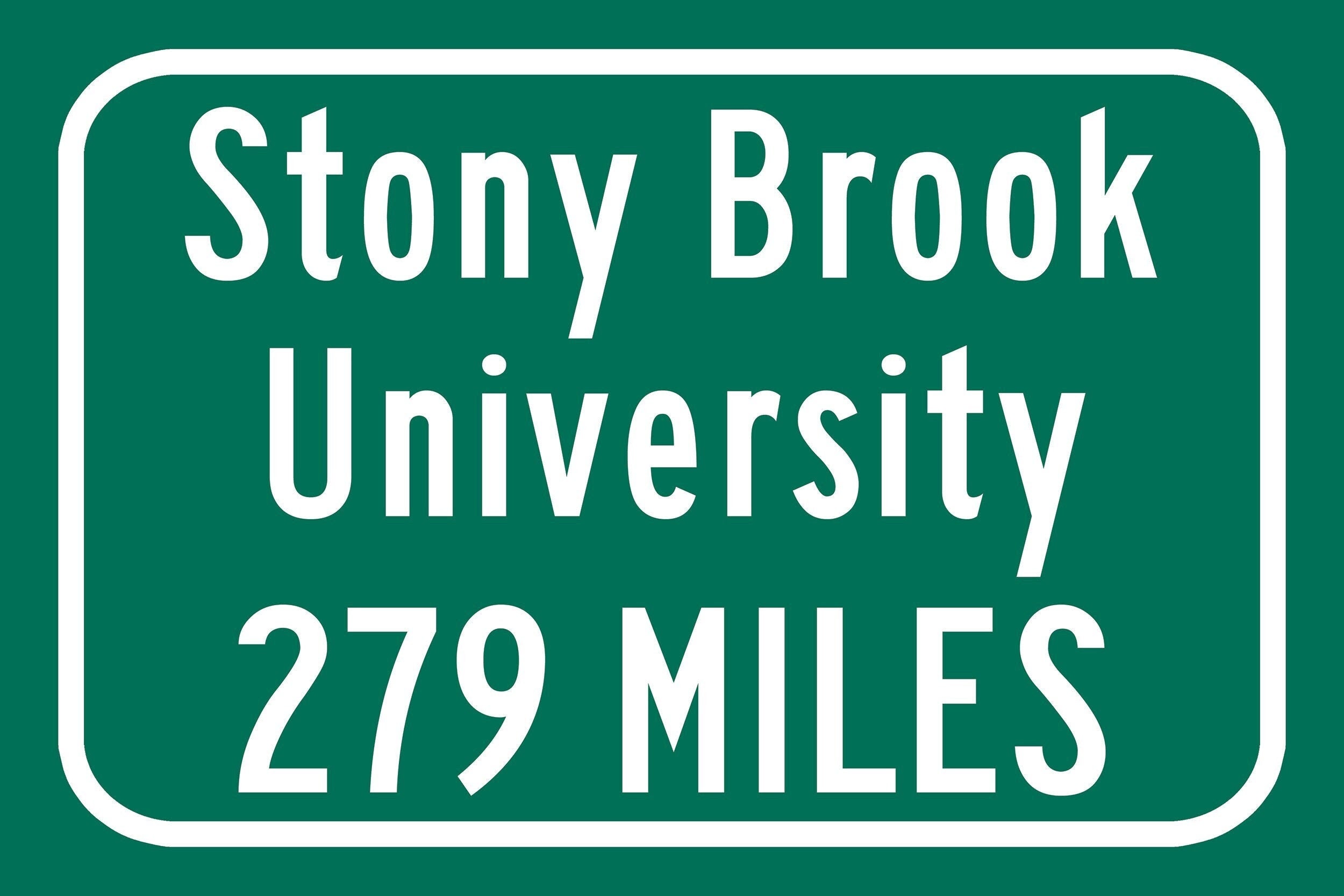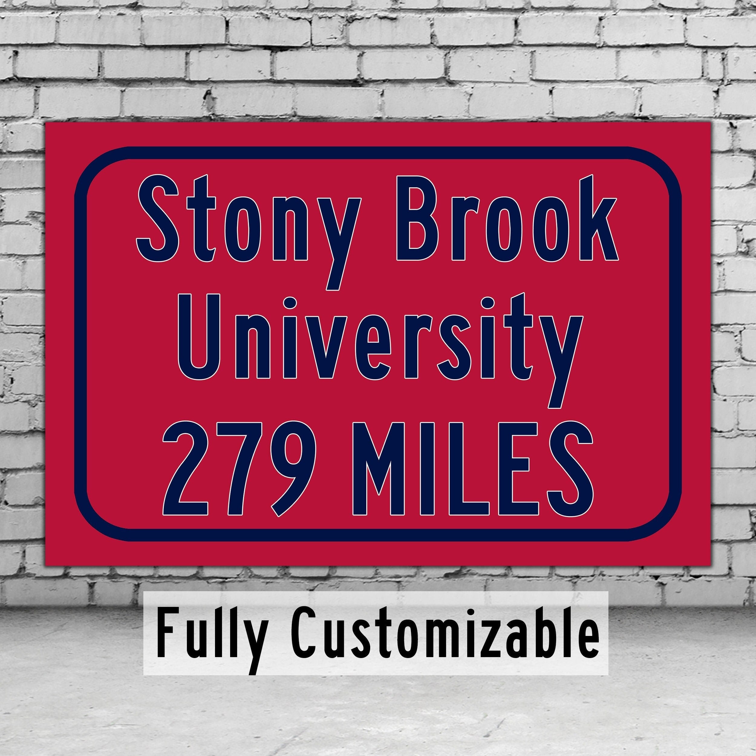 Personalized Highway Distance sign to Stony Brook University. Stony Brook University . Stony Brook Seawolves sign.