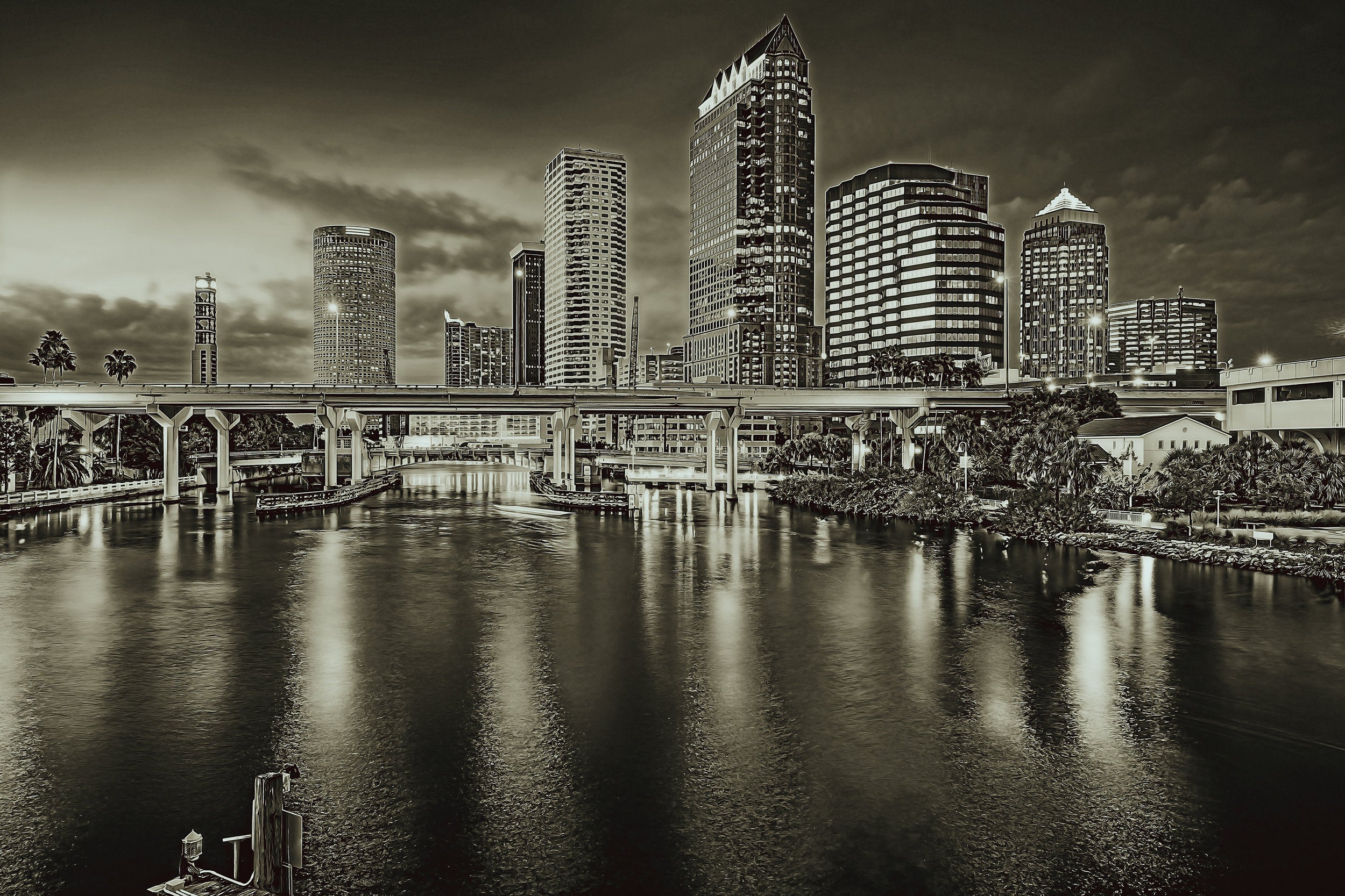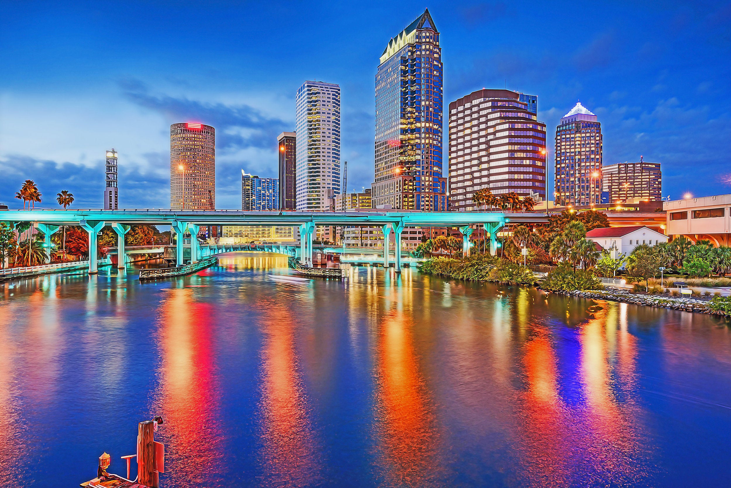 Stunning Digital oil painting of the Tampa Florida skyline. Tampa watercolor print. Great for a piece of wall art. Available as a single canvas at 16″ x 24″ , 24″ x 36″ , or 32″ x 48″ or we can make you a special 3 panel work of art as large as 4 x 8 foot wide or get the digital file and you can print it yourself. ( Digital File only, no product included) Tampa Skyline art