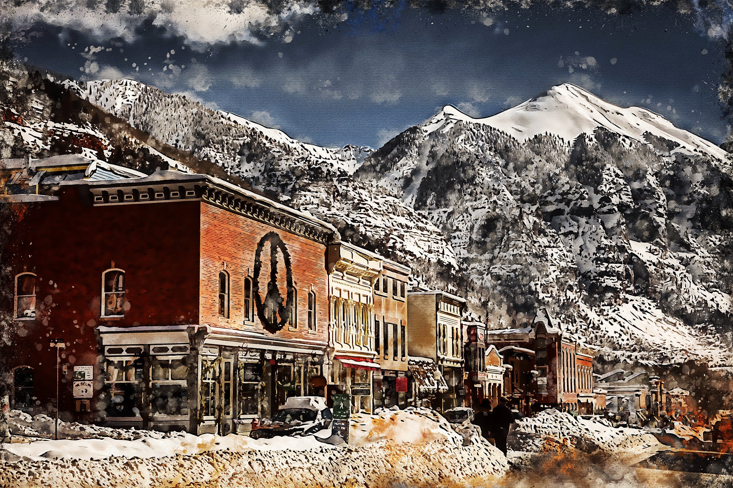 Stunning watercolor of the Telluride Colorado skyline. Great for a piece of wall art. Available as a single canvas at 16″ x 24″ , 24″ x 36″ , or 32″ x 48″ or we can make you a special 3 panel work of art as large as 4 x 8 foot wide. Telluride Colorado watercolor