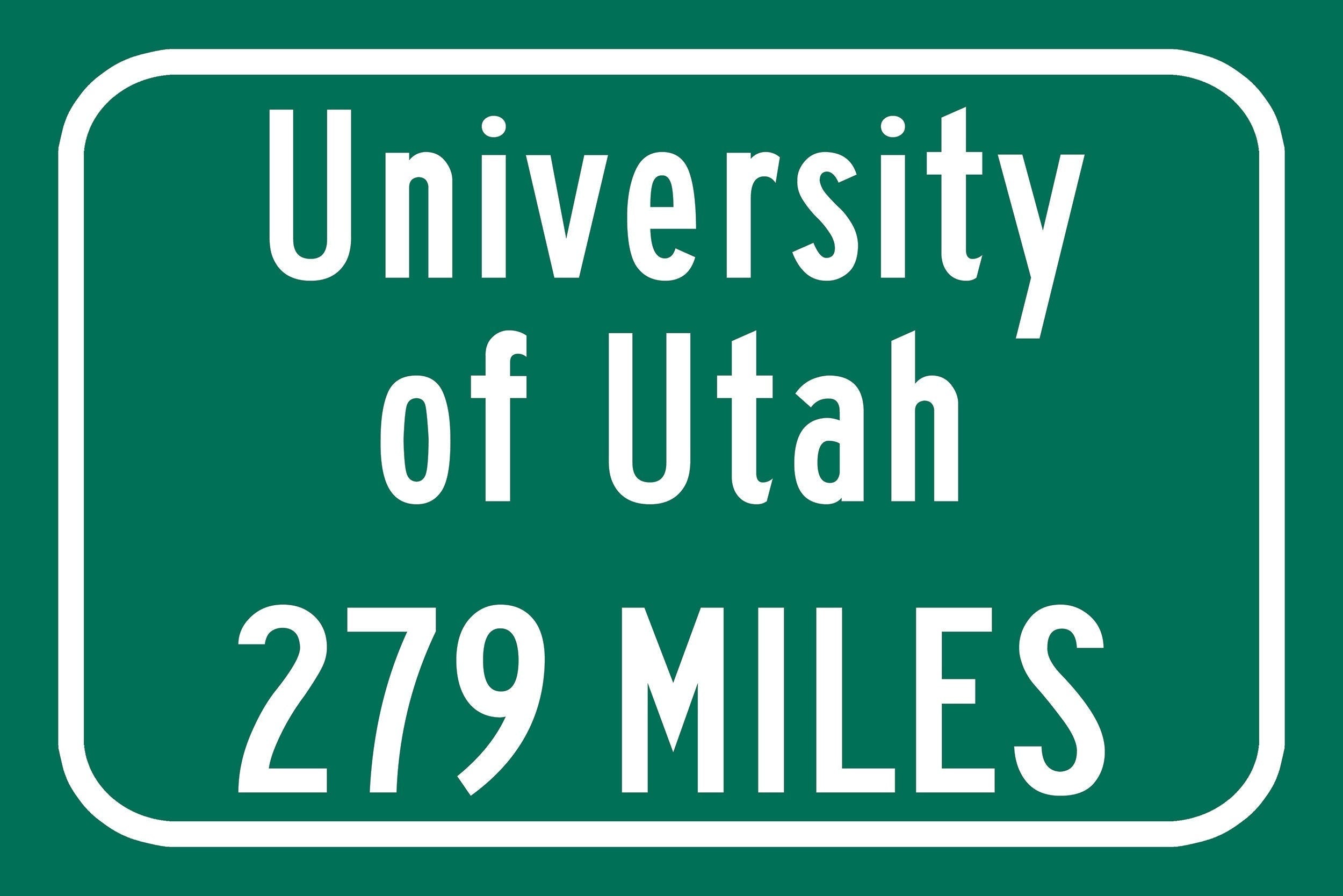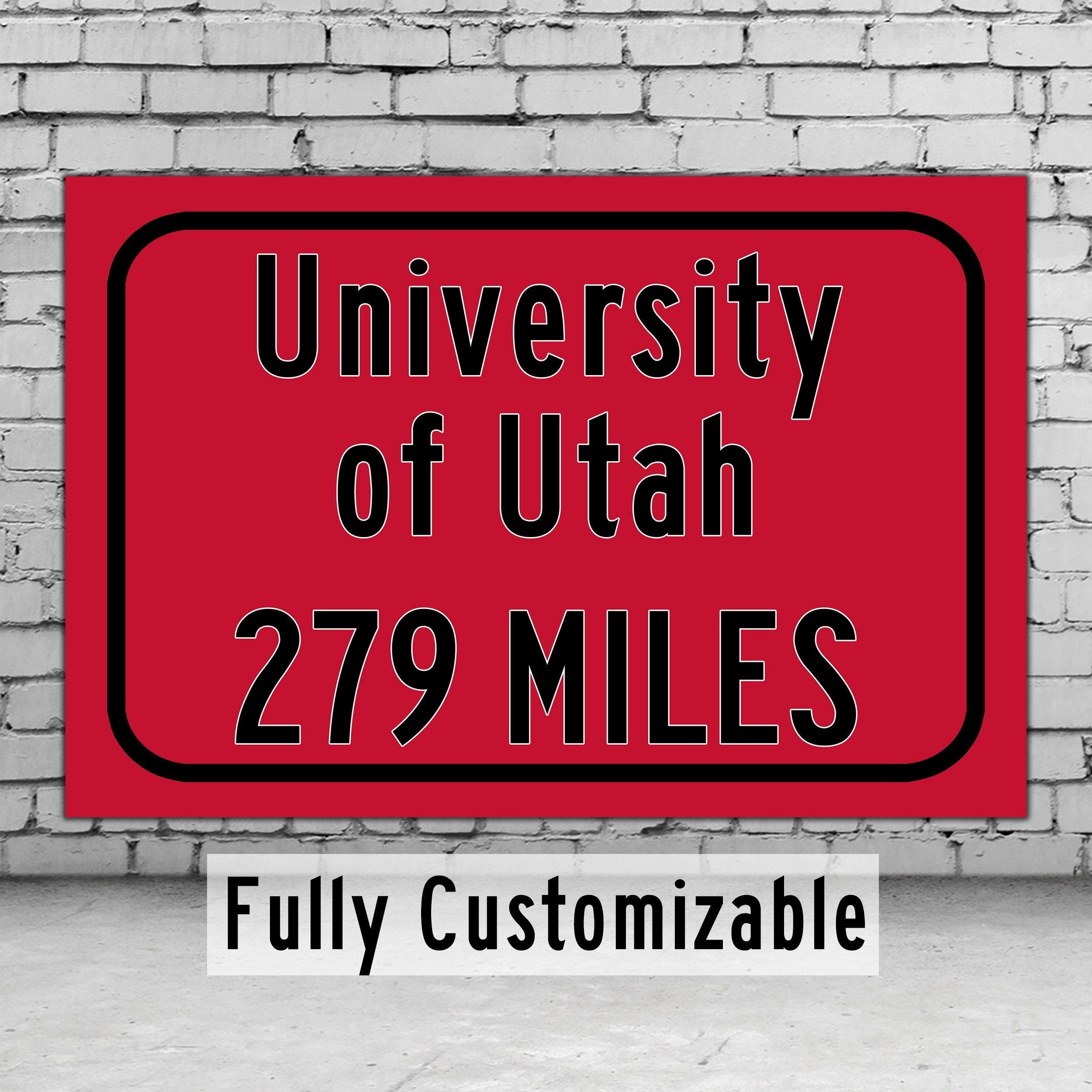 Personalized Highway Distance sign to The University of Utah / Utah Utes / Salt Lake City Utah /
