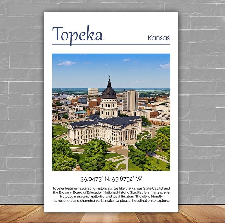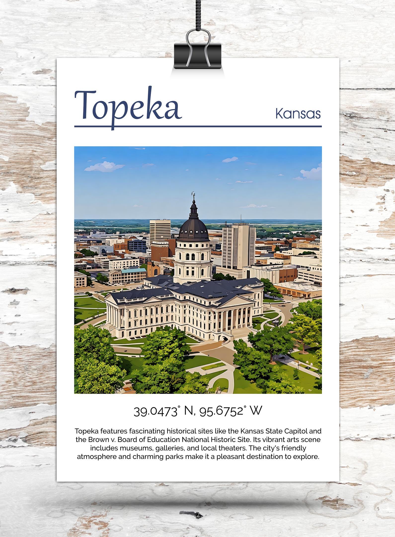 Add this Topeka travel art canvas print to your collection today and let the charm of this city brighten up your space!