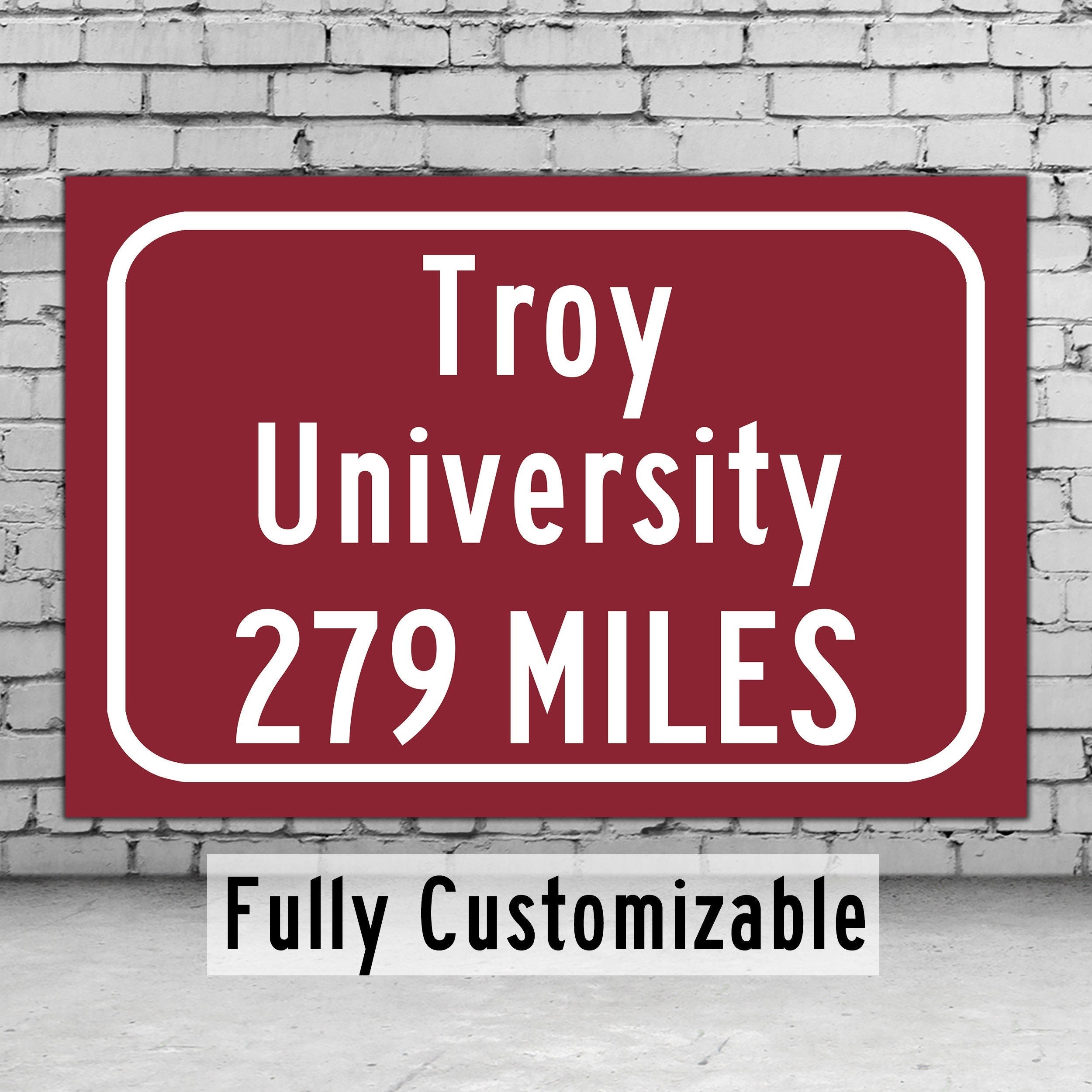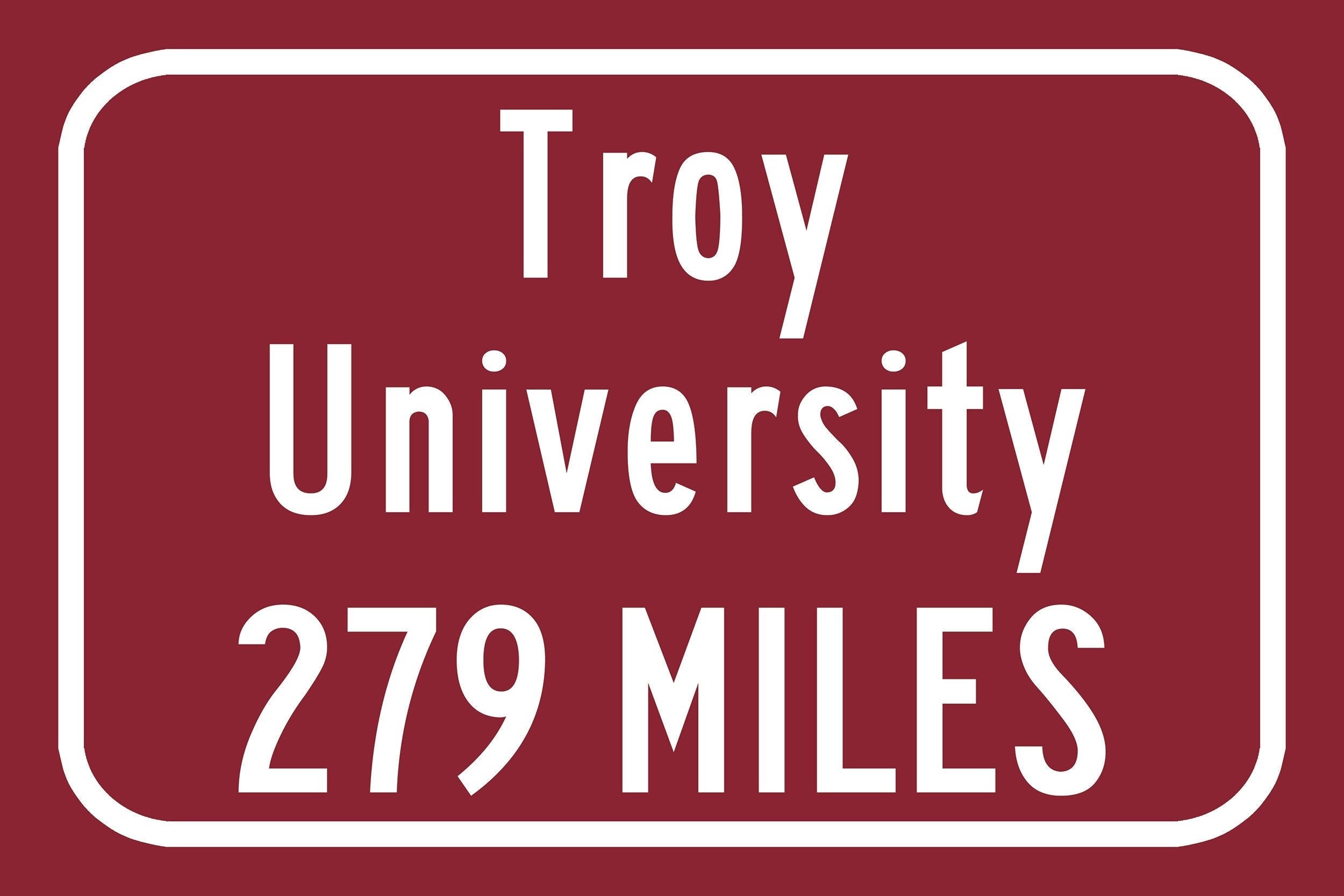 Personalized Highway Distance sign to Troy University / Troy Alabama / Troy Trojans