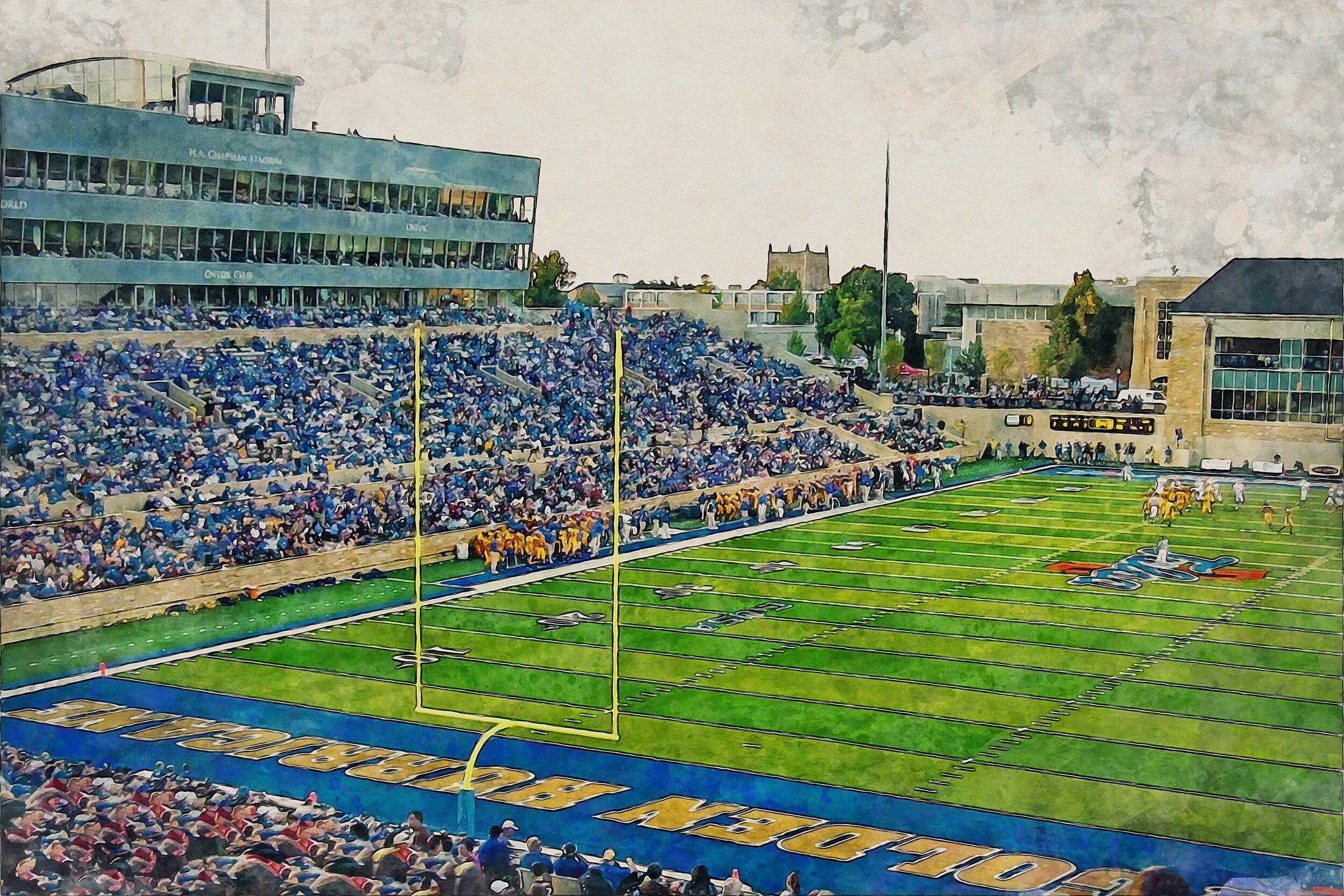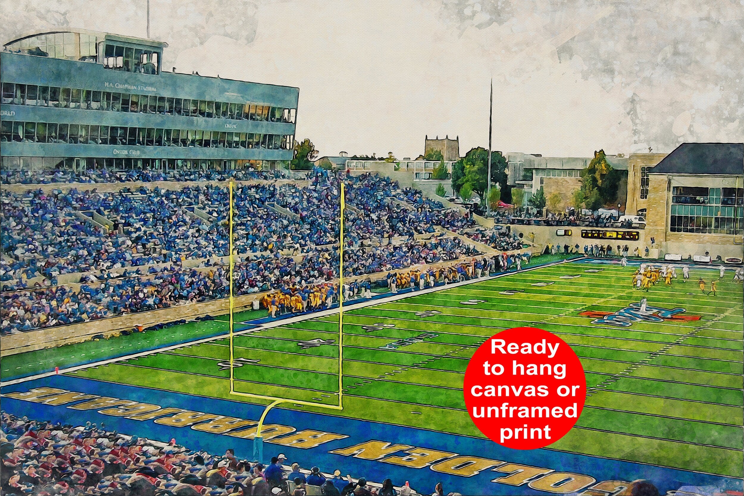 Tulsa Golden Hurricanes, H.A. Chapman Stadium , Watercolor Digital Sketch Print Canvas Print, Tulsa Oklahoma, University of Tulsa