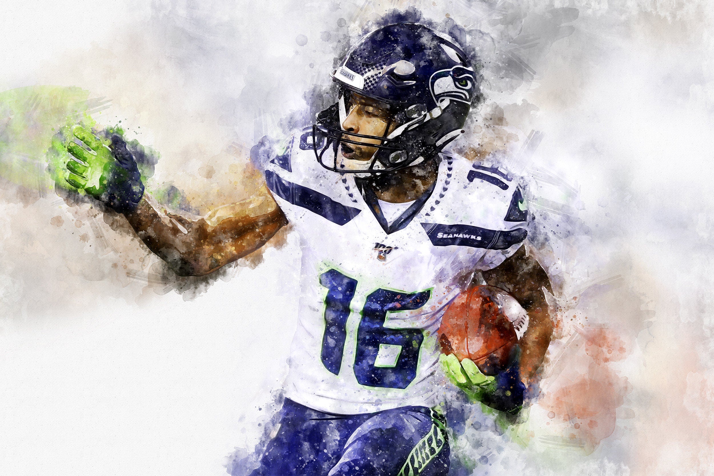 Beautiful watercolor of Tyler Lockett playing for the Seattle Seahawks
