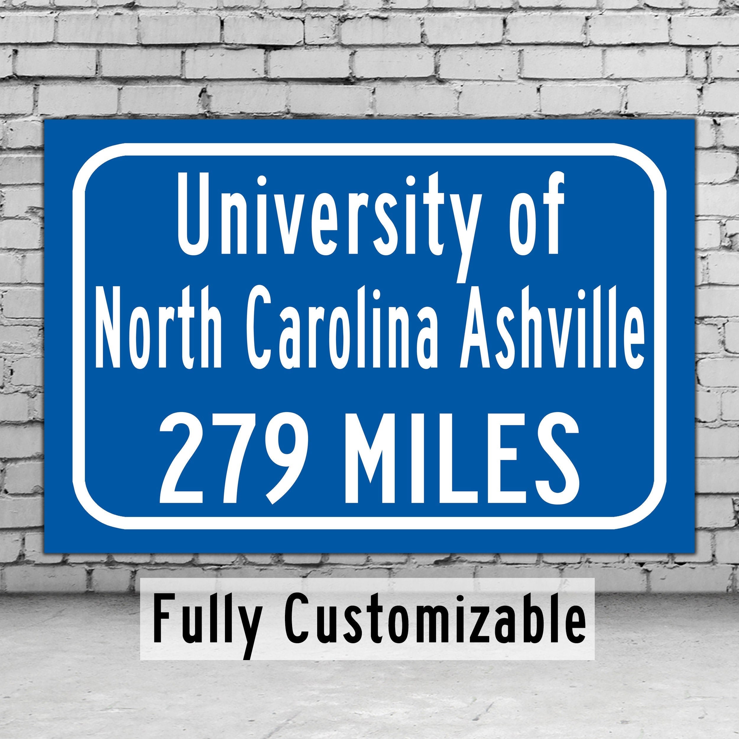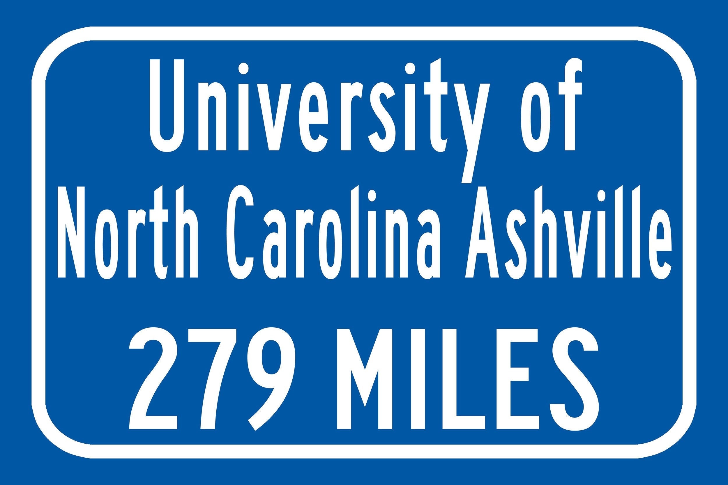 Personalized Highway Distance sign to UNC Asheville sign. UNC Asheville