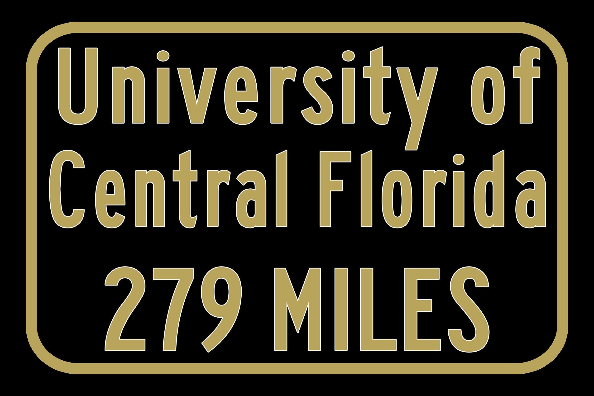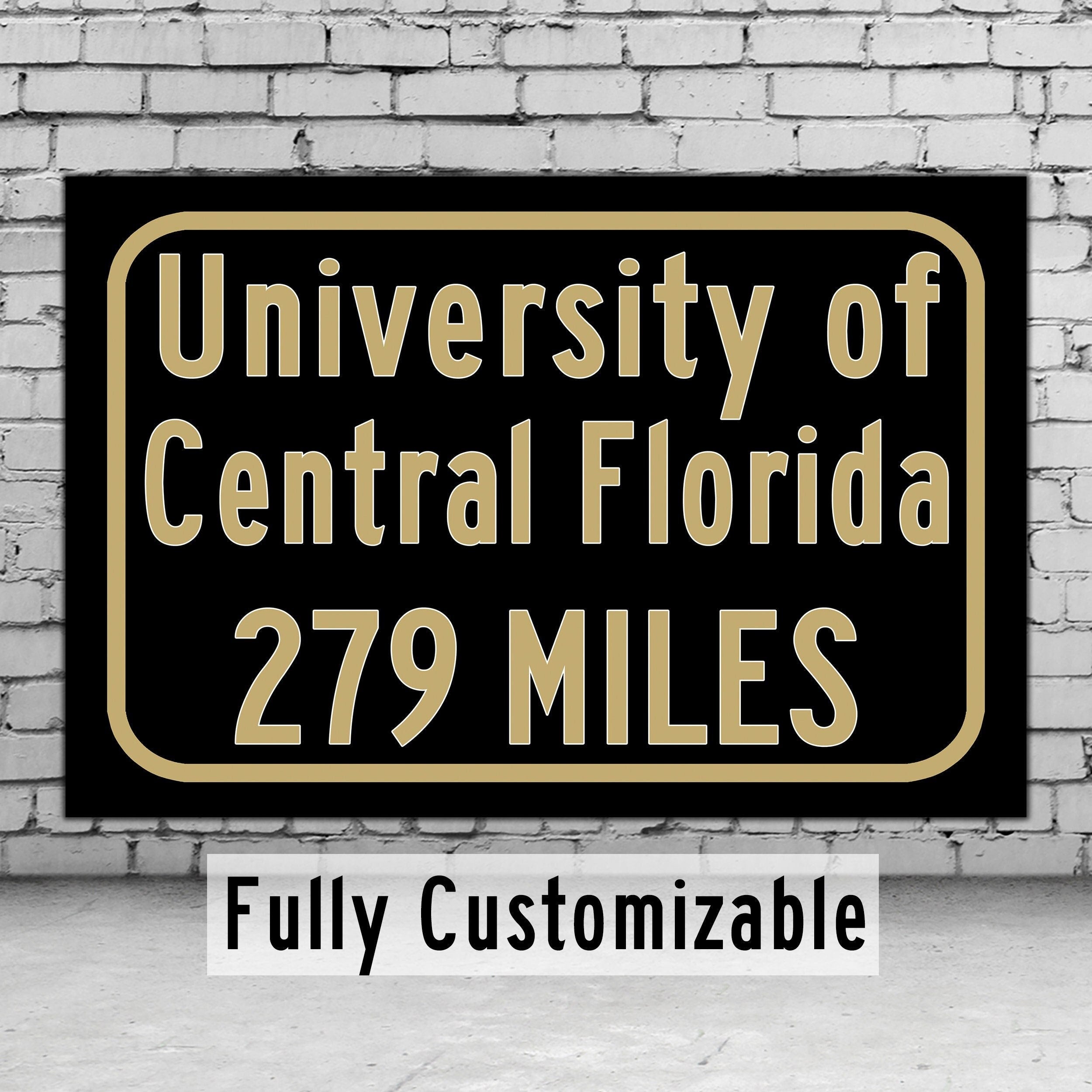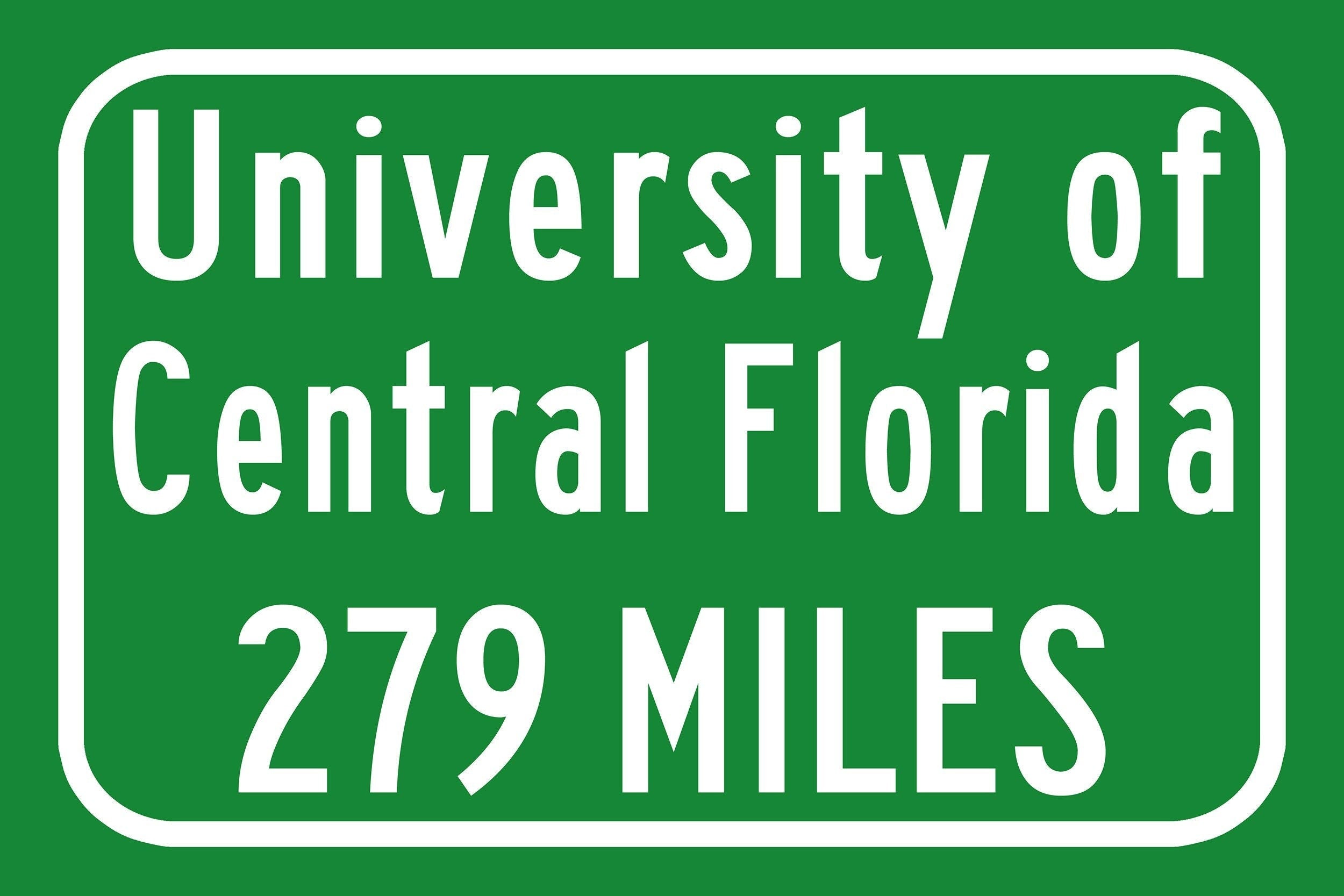 Personalized Highway Distance sign to University of Central Florida .University of Central Florida sign. UCF Knights sign.