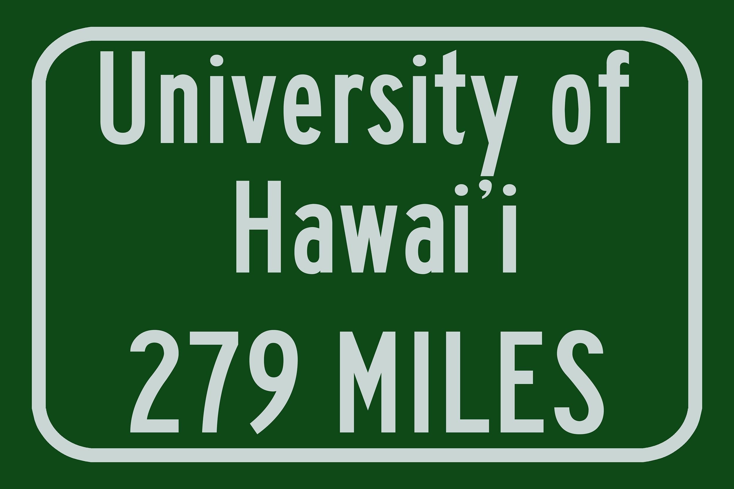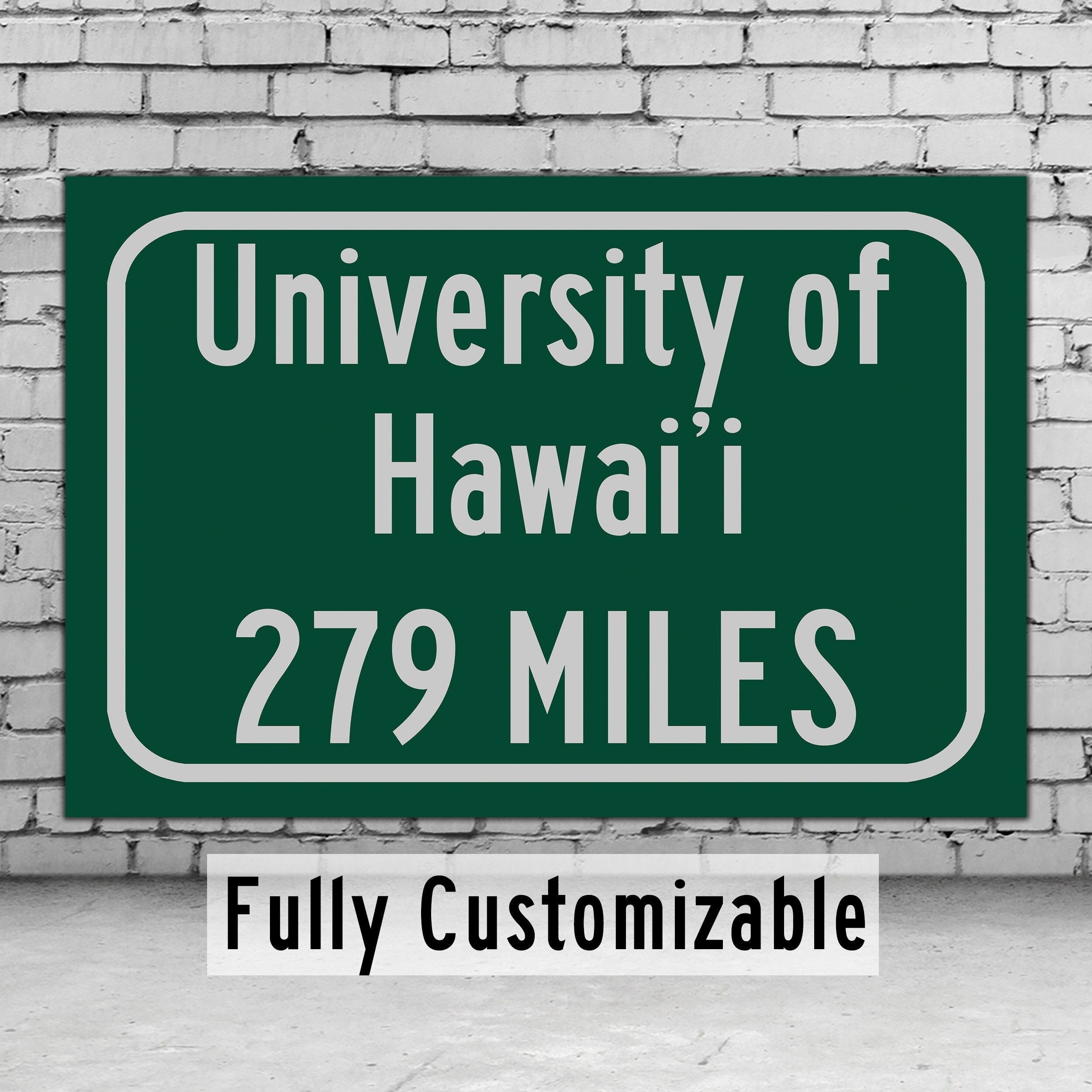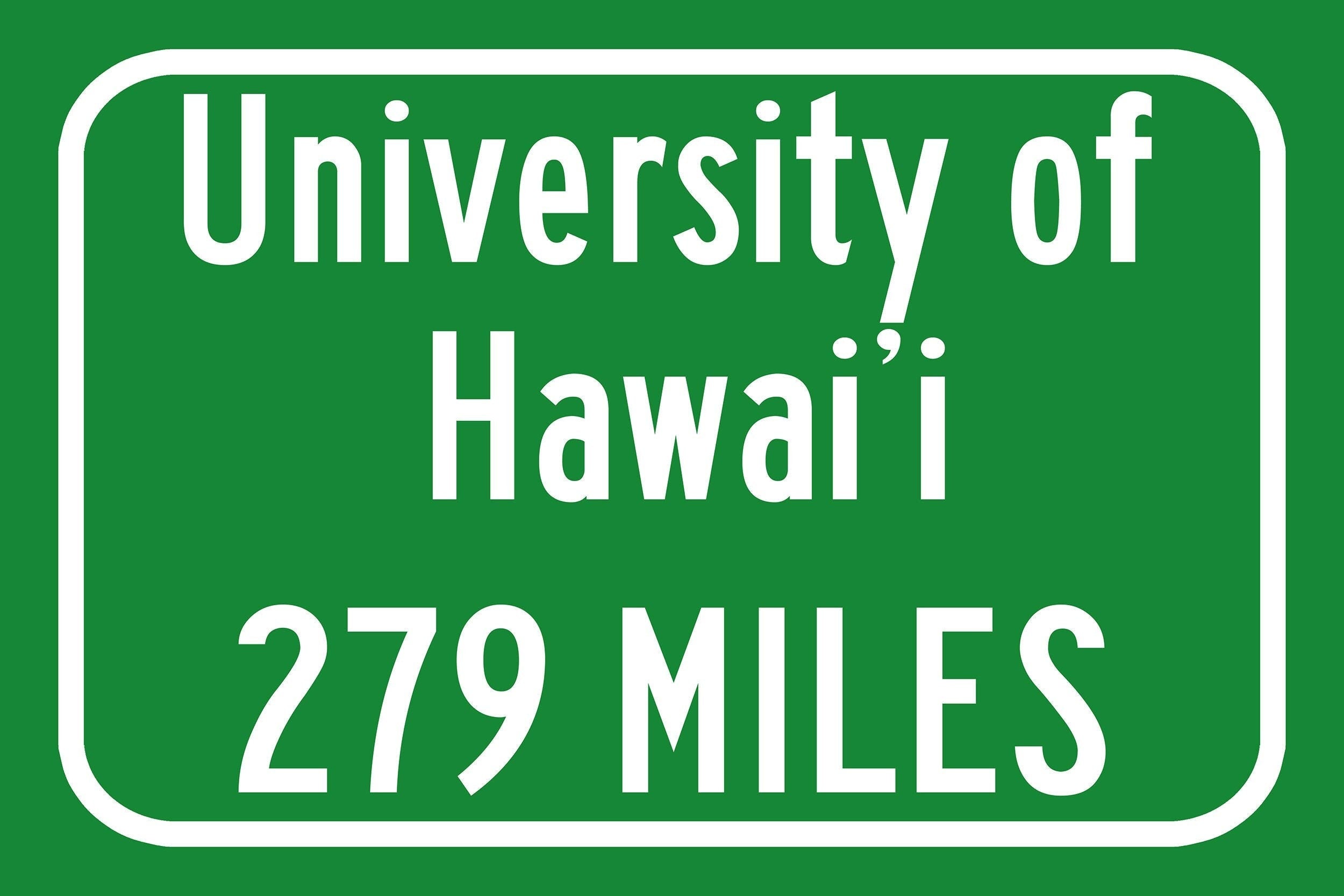 Personalized Highway Distance sign to University of Hawaiʻi at Mānoa, University of Hawaiʻi at Mānoa Warriors Sign