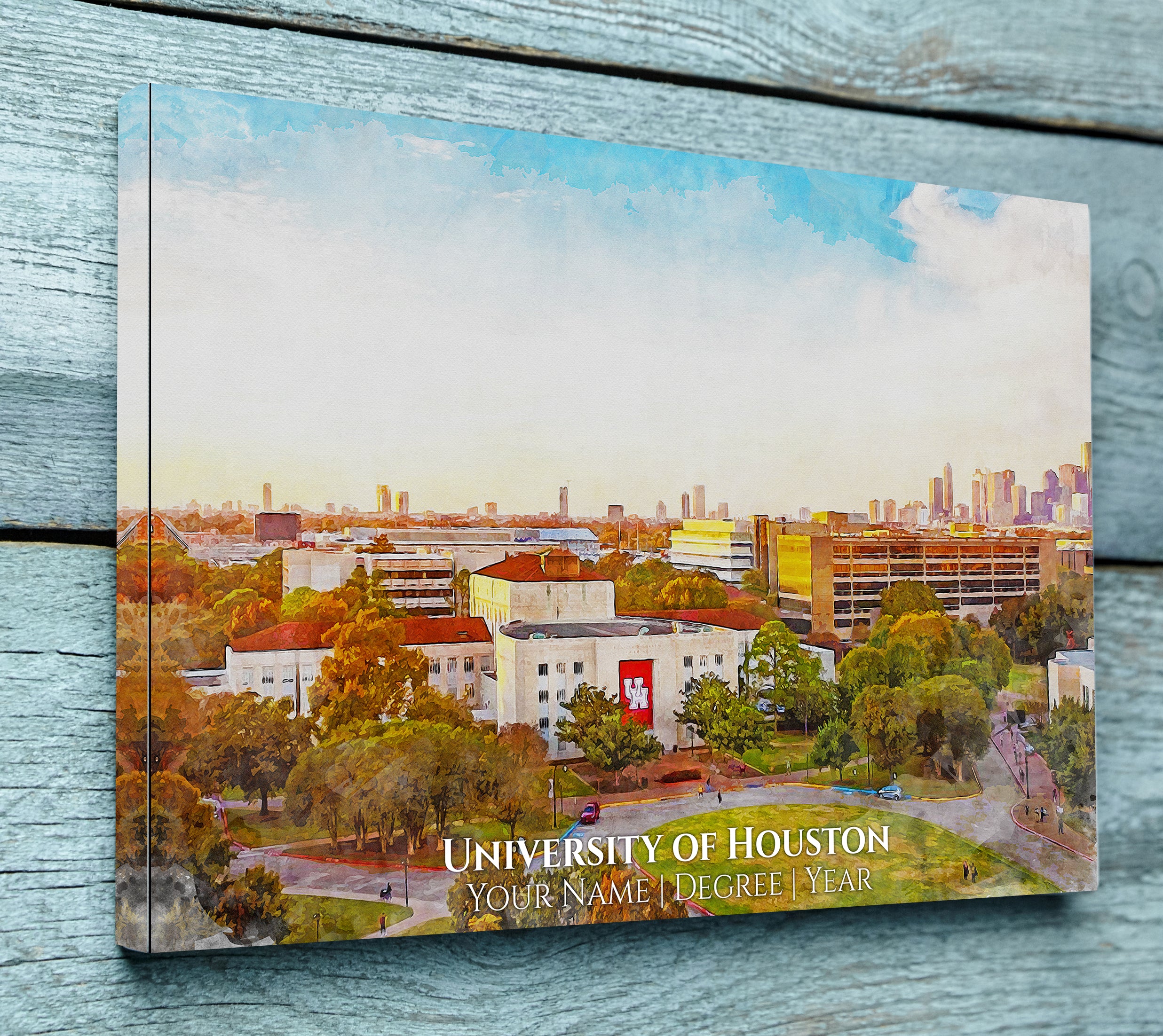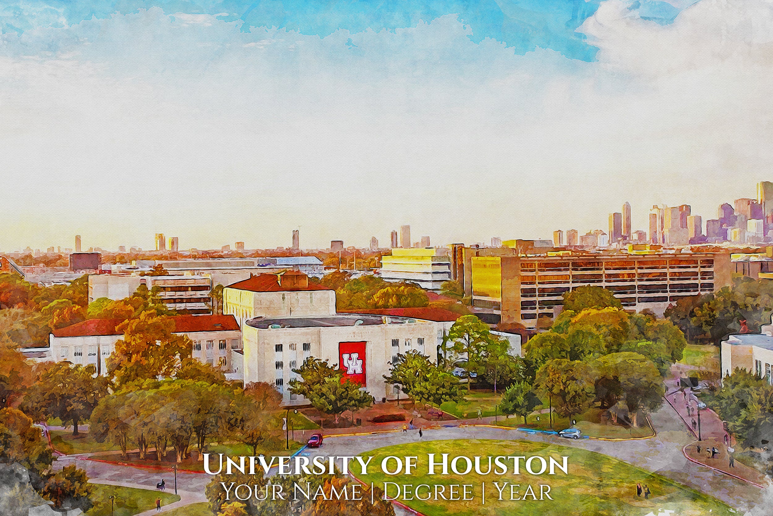 You will love these watercolor digital prints of University of Houston. Perfect for a graduation gift. These make wonderful gift for University of Houston Alumni and fans. Feel free to customize it as well when you check out. We will send a proof for you to approve before we print so please check your email about 24hrs after you order