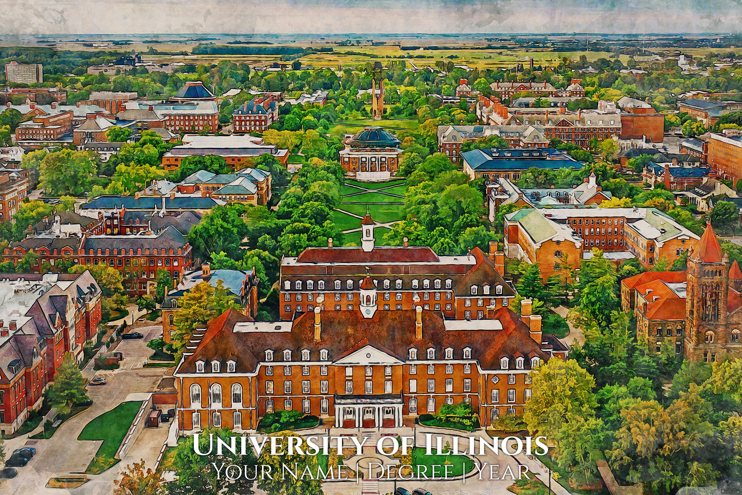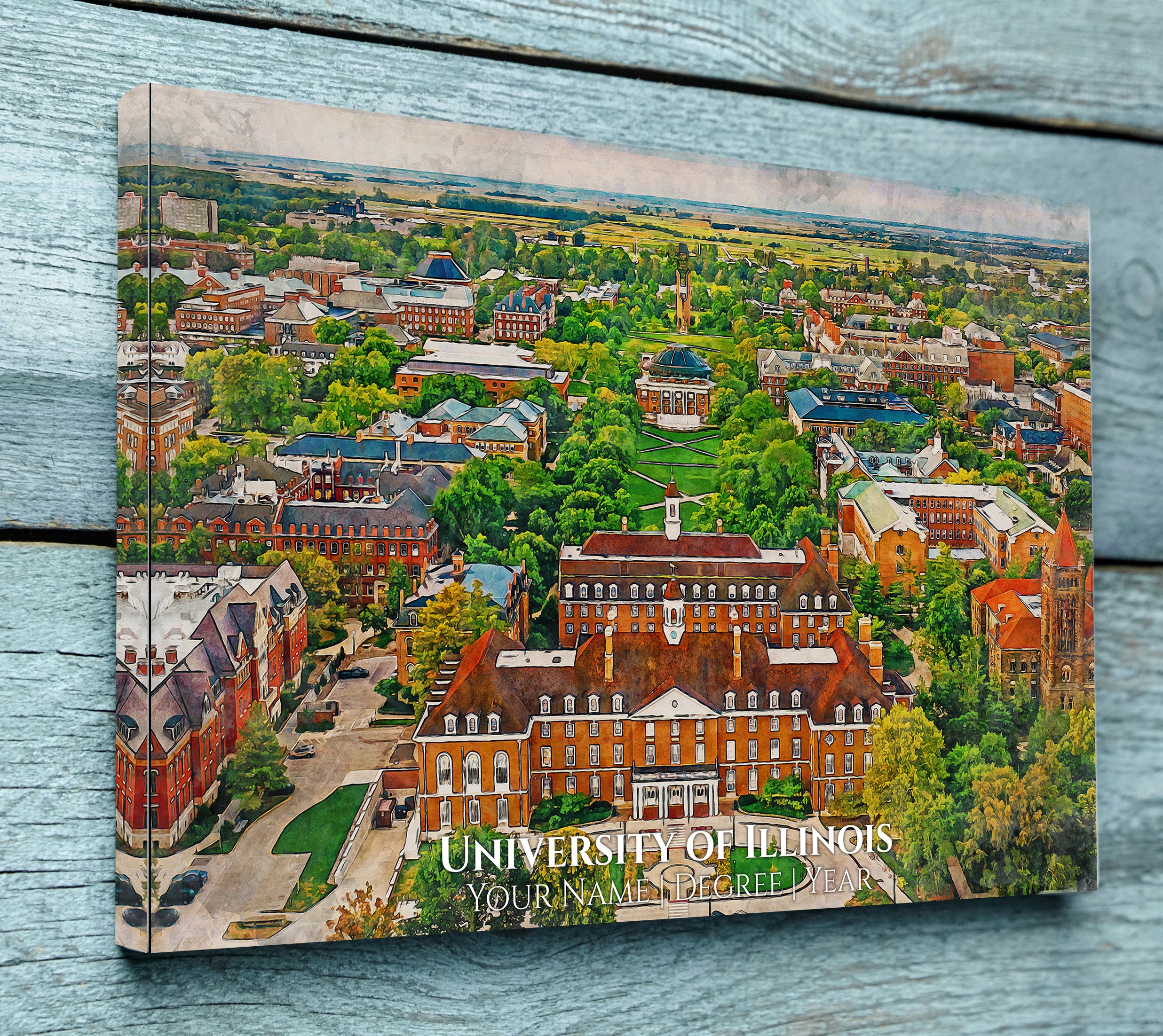 University of Illinois watercolor. Graduation gift, University of Illinois , College wall art, College WC