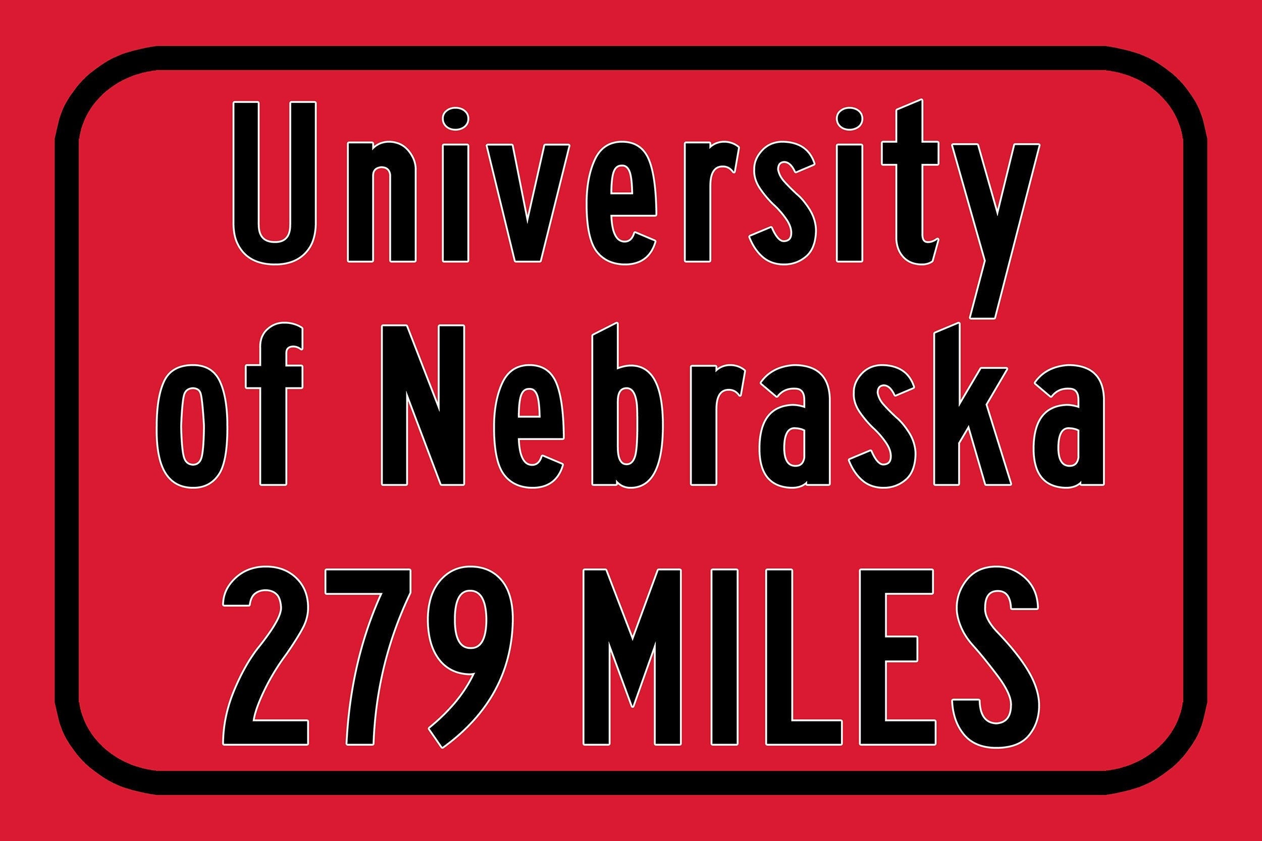 Personalized Highway Distance sign to The University of Nebraska Cornhuskers in Lincoln. University of Nebraska Cornhuskers Sign