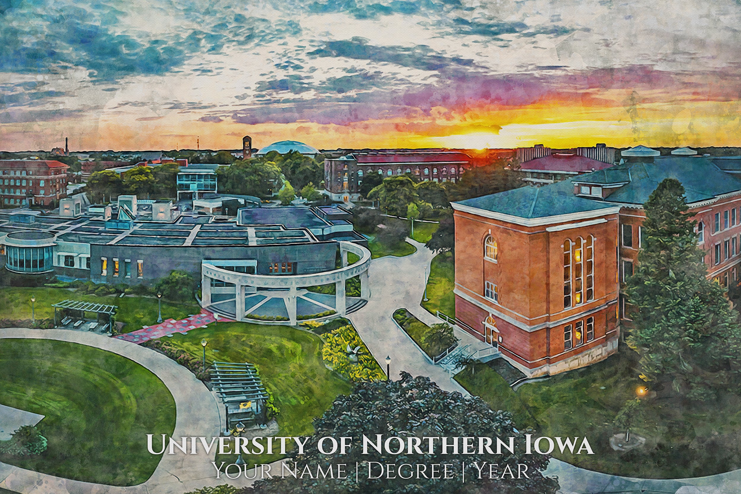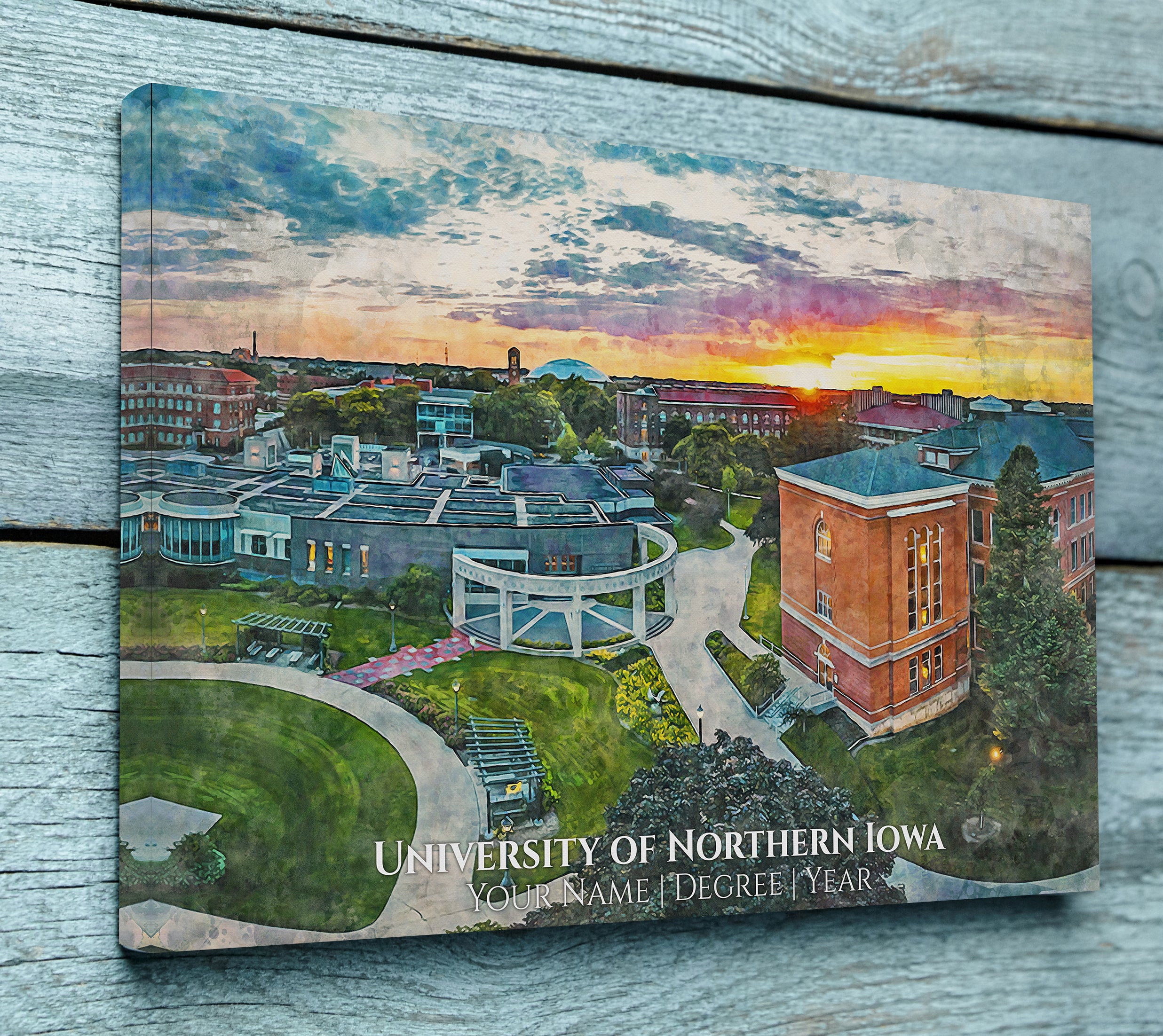 You will love these watercolor digital prints of University of North Iowa. Perfect for a graduation gift. These make wonderful gift for University of North Iowa Alumni and fans. Feel free to customize it as well when you check out. We will send a proof for you to approve before we print so please check your email about 24hrs after you order