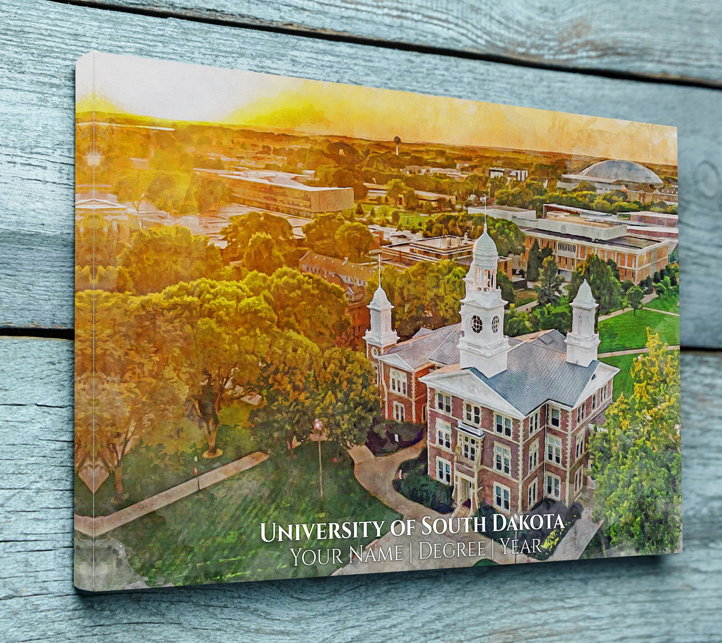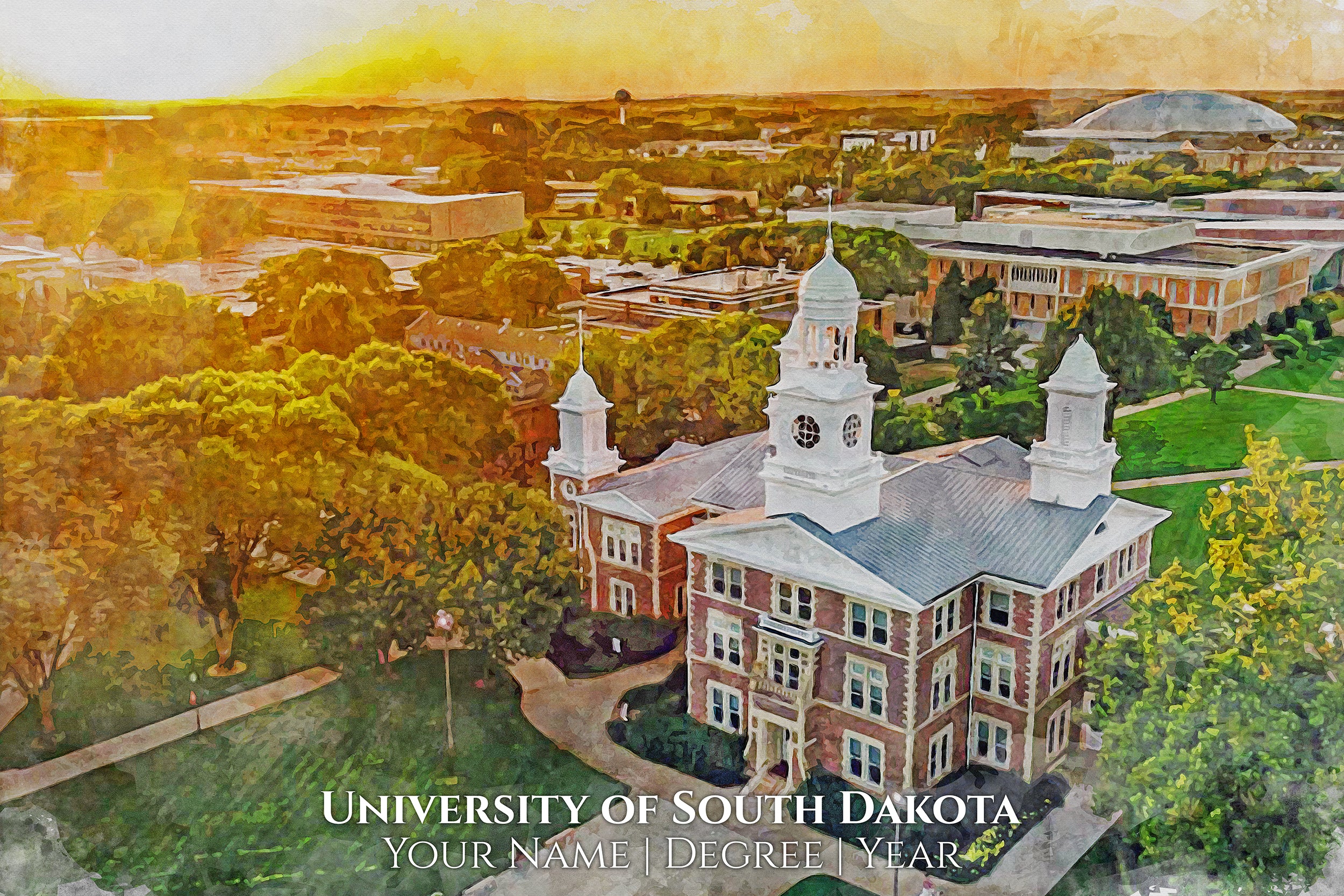 You will love these watercolor digital prints of University of South Dakota. Perfect for a graduation gift. These make wonderful gift for University of South Dakota Alumni and fans. Feel free to customize it as well when you check out. We will send a proof for you to approve before we print so please check your email about 24hrs after you order
