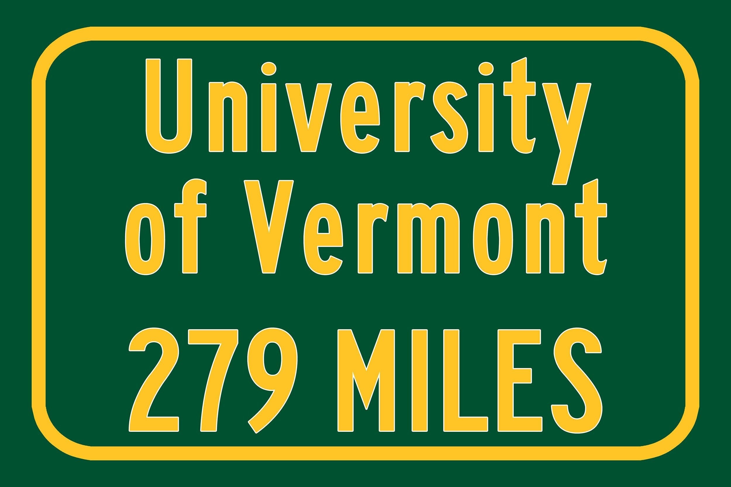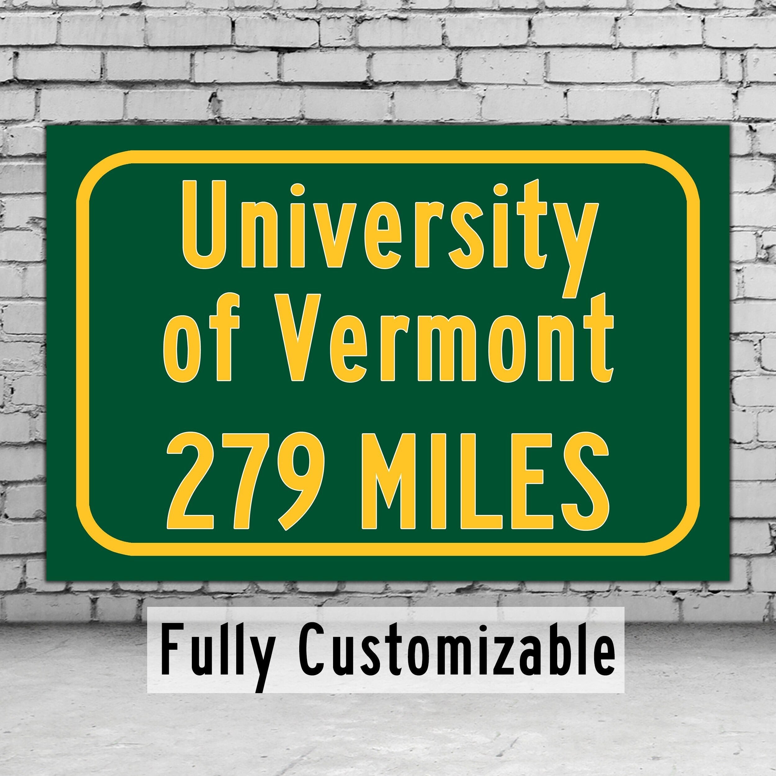 University of Vermont / Custom College Highway Distance Sign /University of Vermont / Vermont Catamounts / Burlington Vermont