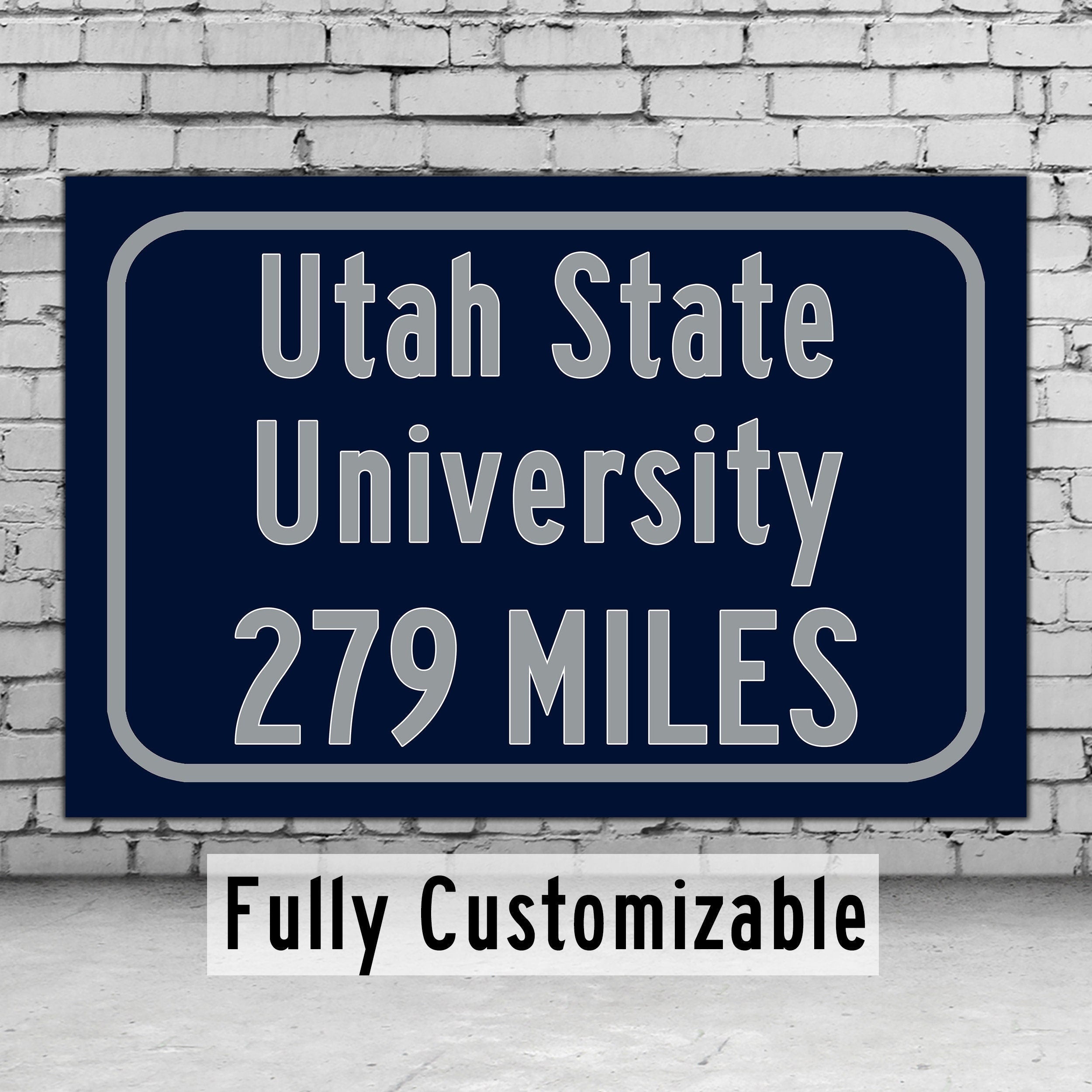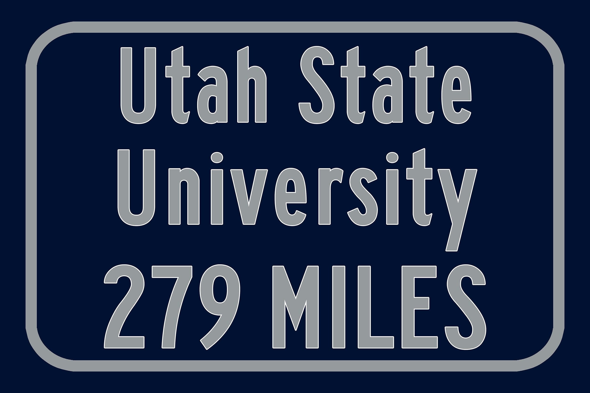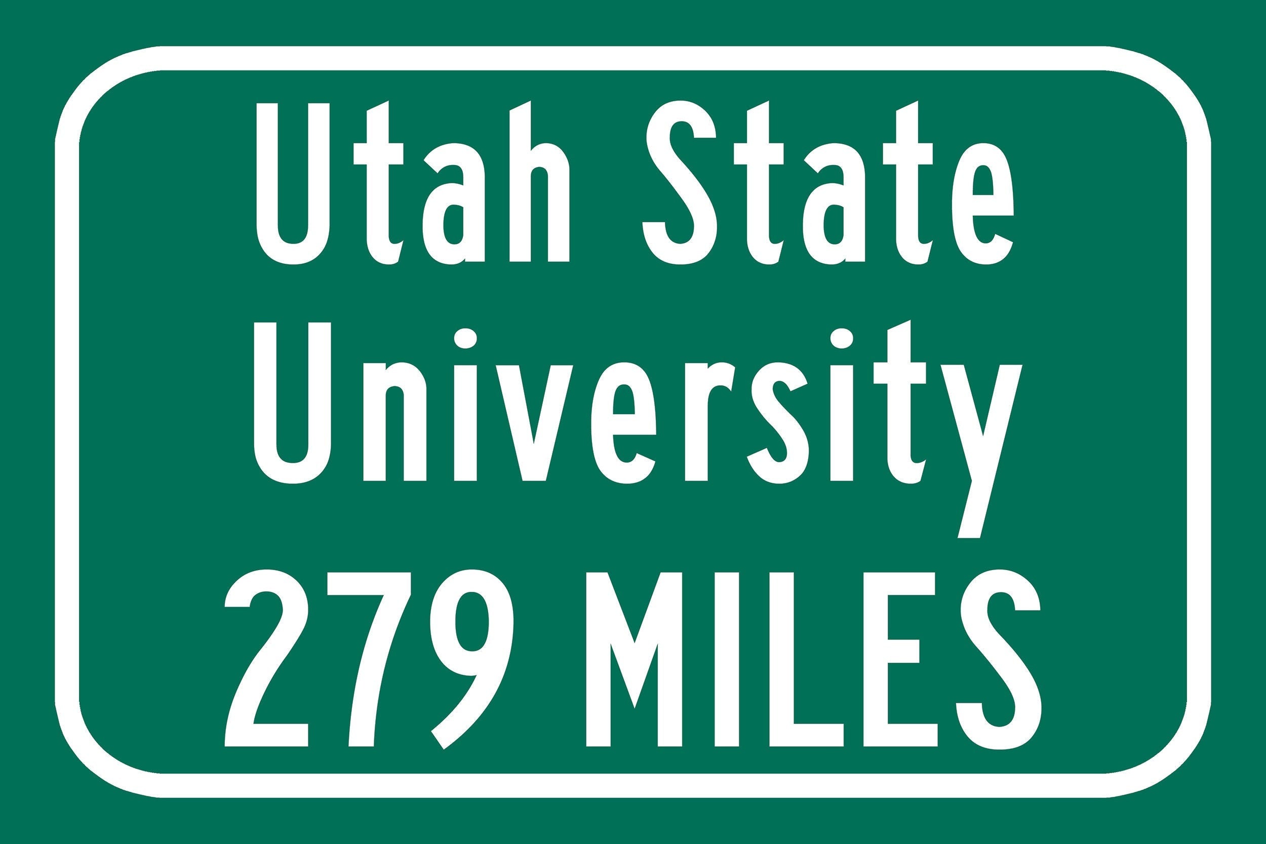 Personalized Highway Distance sign to Utah State University / Logan Utah / Utah State Aggies /