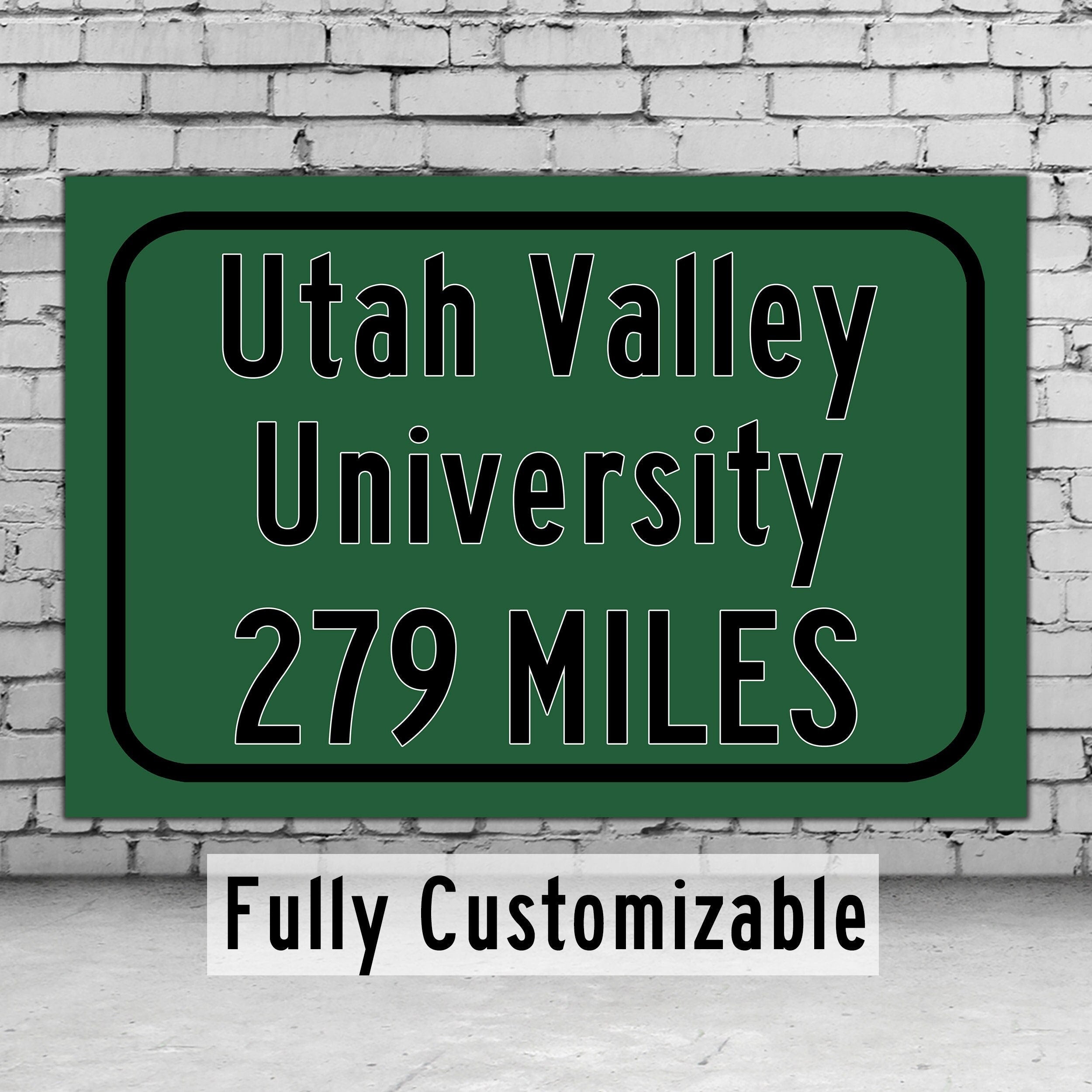 Utah Valley University / Custom College Highway Distance Sign / Utah Valley Wolverines / Orem Utah