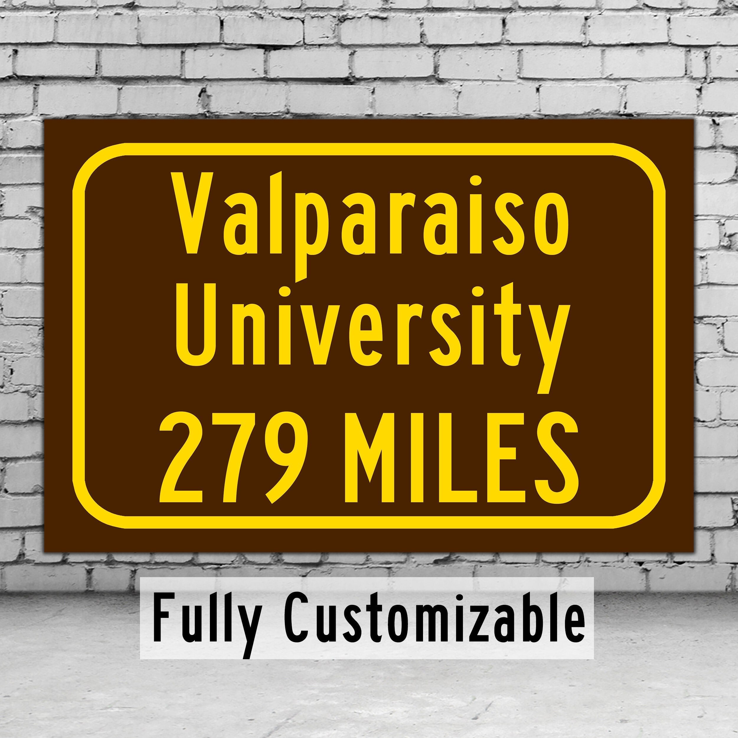 Personalized Highway Distance sign to Valparaiso University / Valparaiso Beacons / Valparaiso Indiana /