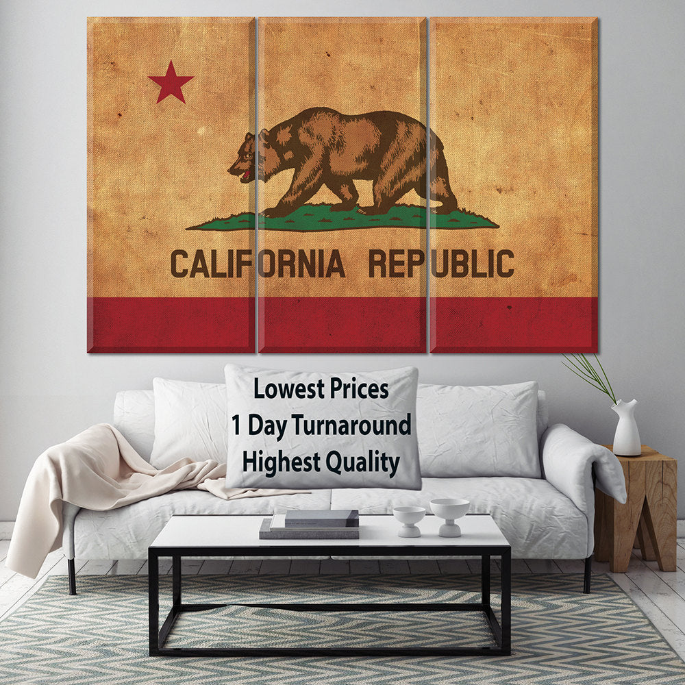 Vintage California Flag on Canvas, California, Flag, Wall Art, California Photo, California Print,West Coast Flag, Single or Multiple Panels