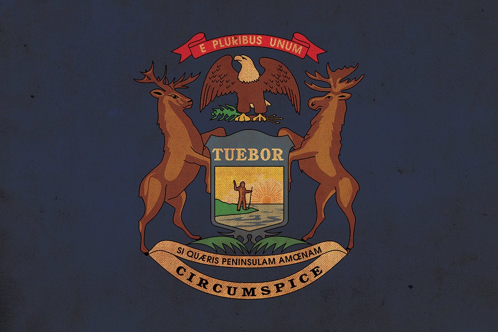 Vintage Michigan Flag on Canvas, Flag, Wall Art, Michigan Photo, Michigan Print, Fine Art, Great Lake Flag, Single or Multiple Panels