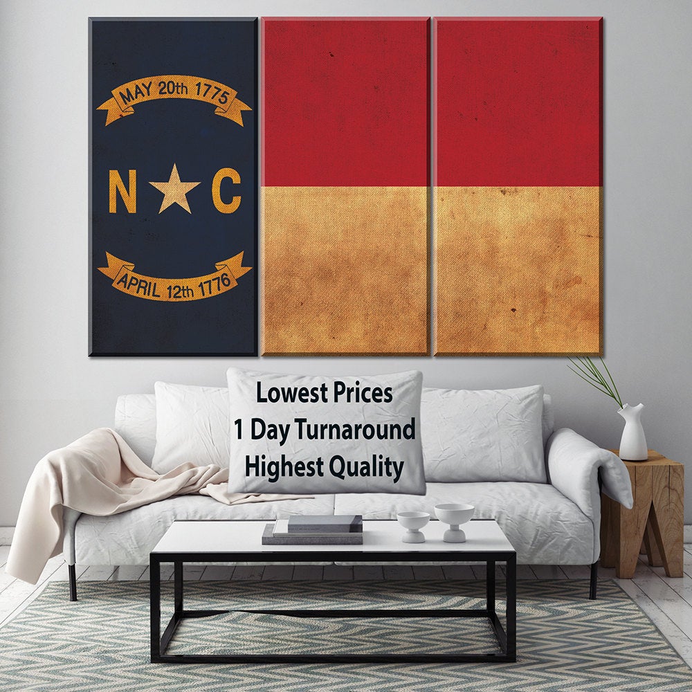 Vintage North Caroling Flag on Canvas, North Carolina Flag, Wall Art, North Carolina Photo North Carolina Print, Single or Multiple Panels