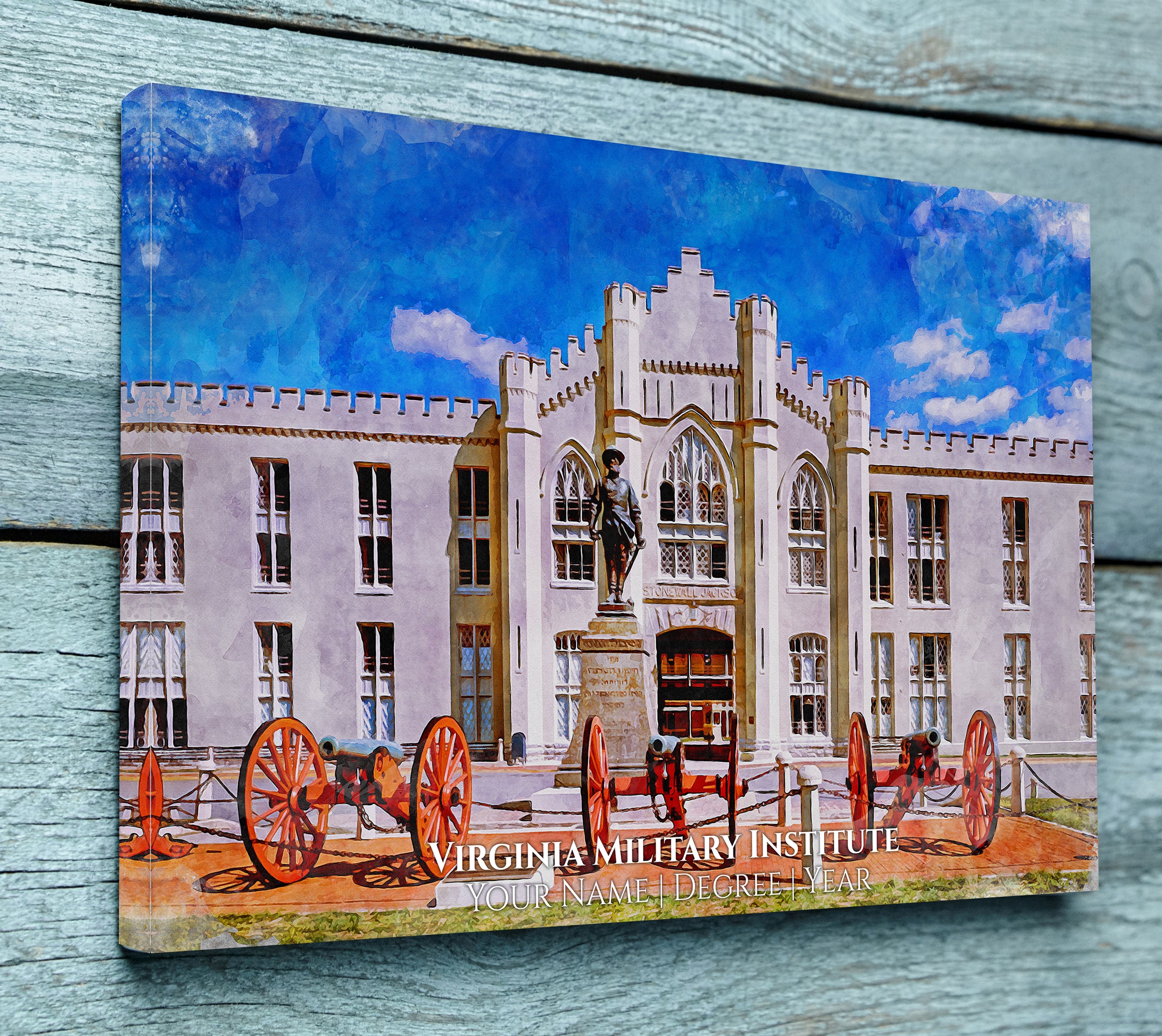 You will love these watercolor digital prints of Virginia Military Institute. Perfect for a graduation gift. These make wonderful gift for Virginia Military Institute students, graduates, and fans. Feel free to customize it as well when you check out. We will send a proof for you to approve before we print so please check your email about 24hrs after you order