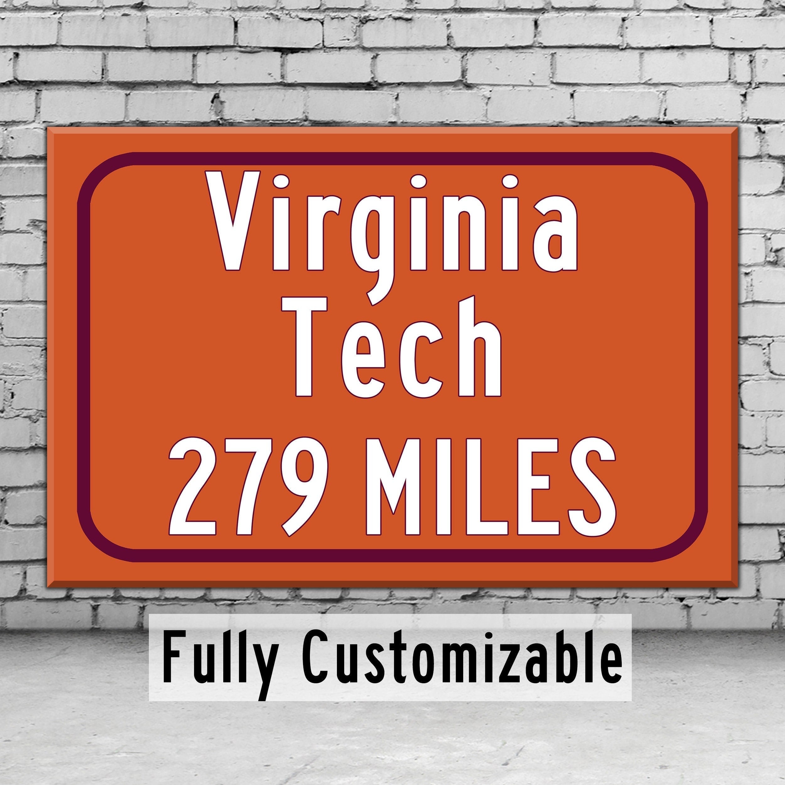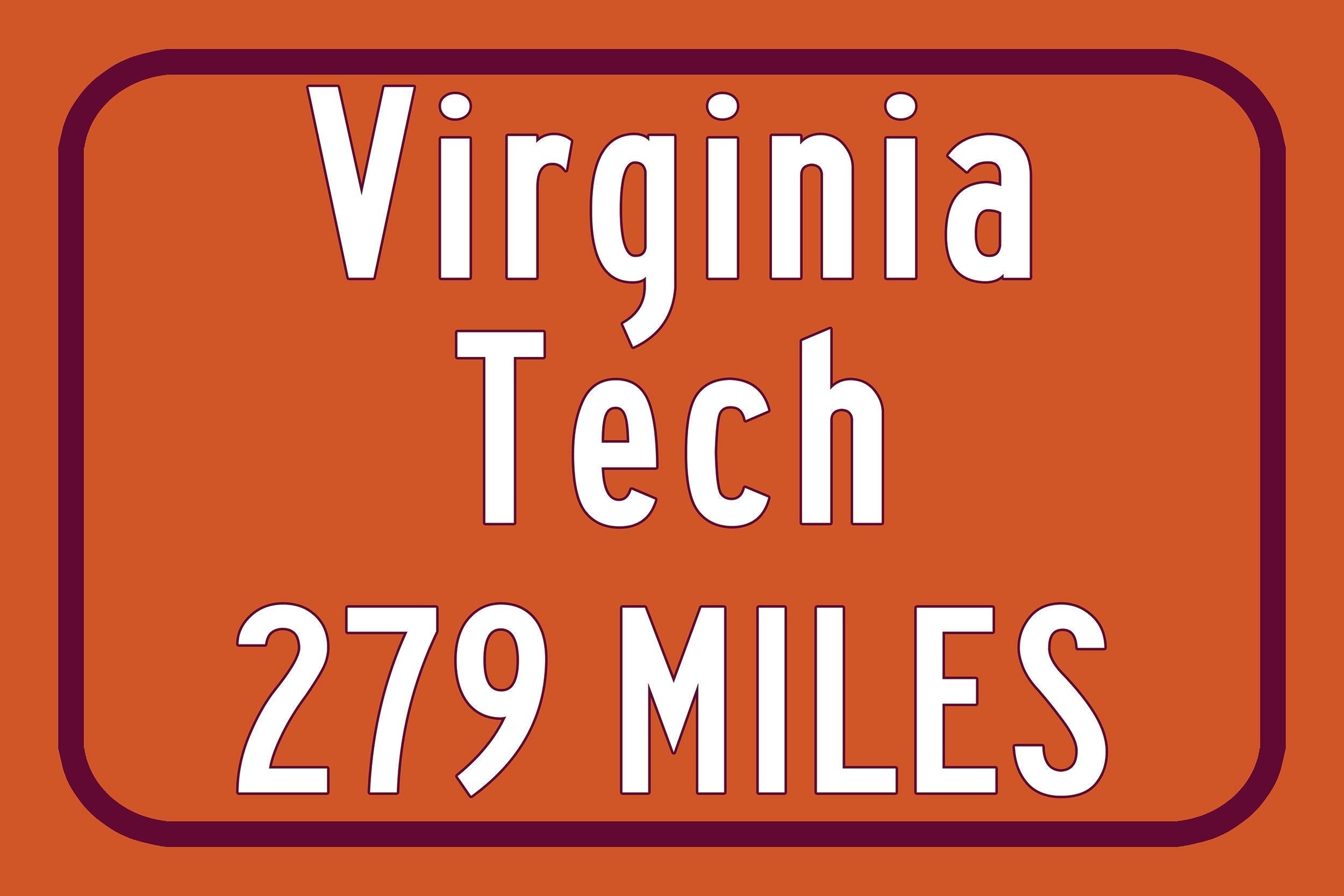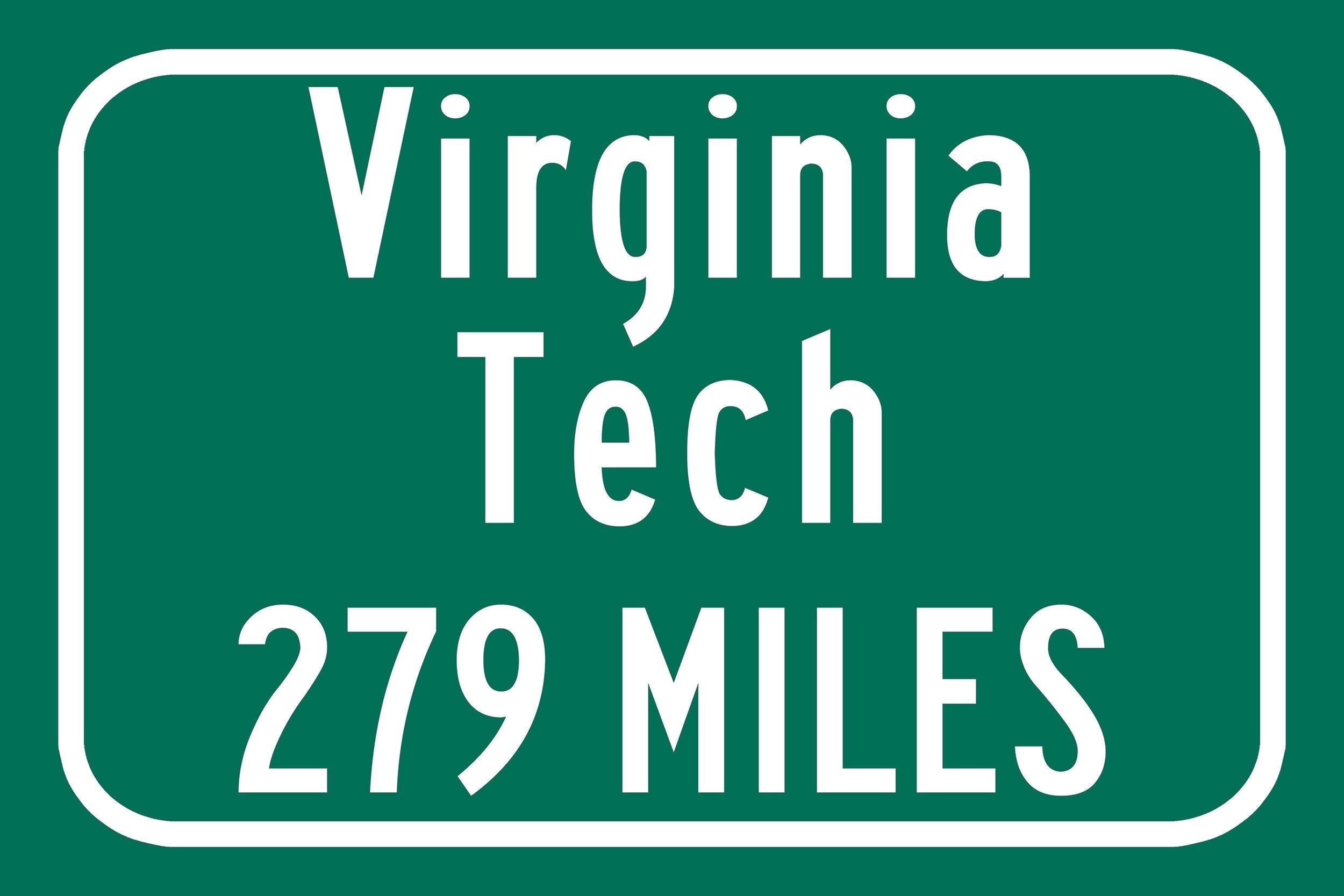 Personalized Highway Distance sign to Virginia Tech. Virginia Tech Sign