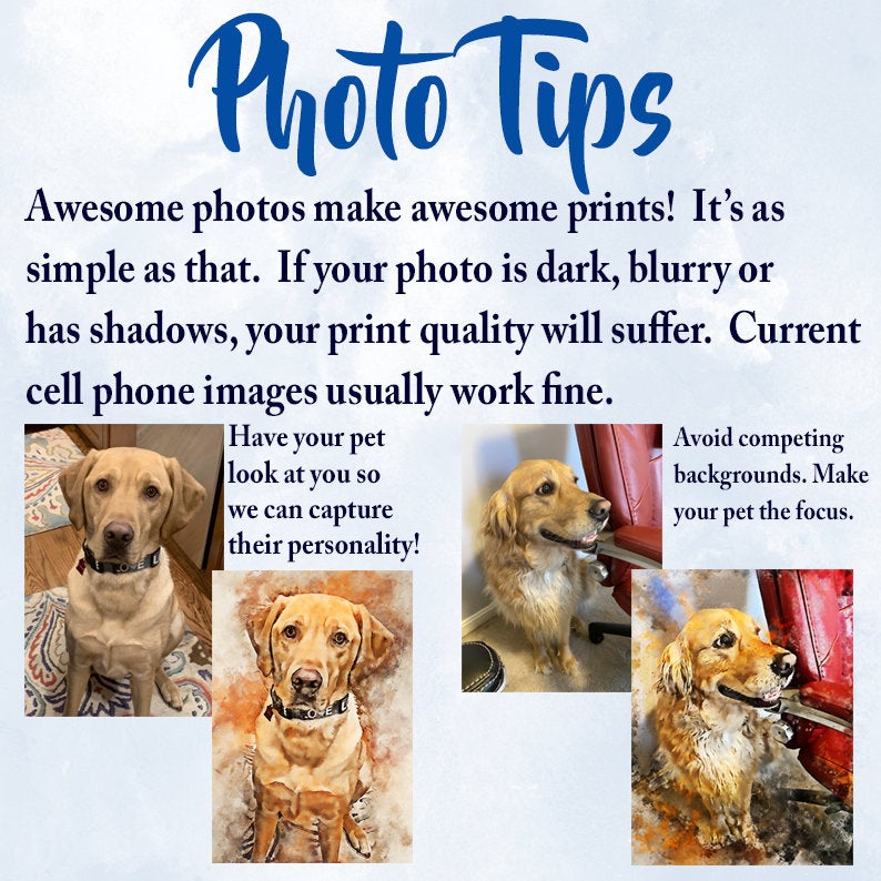 We will send proofs for approval and will not print without your okay. *So keep an eye on your email for the proof(s). Before sending your image, see our photos for tips from our inhouse photographer.