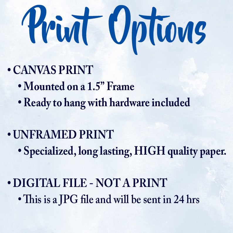 1. Digital File – Digital Image is an emailed file that is for you to have printed. No product is sent.