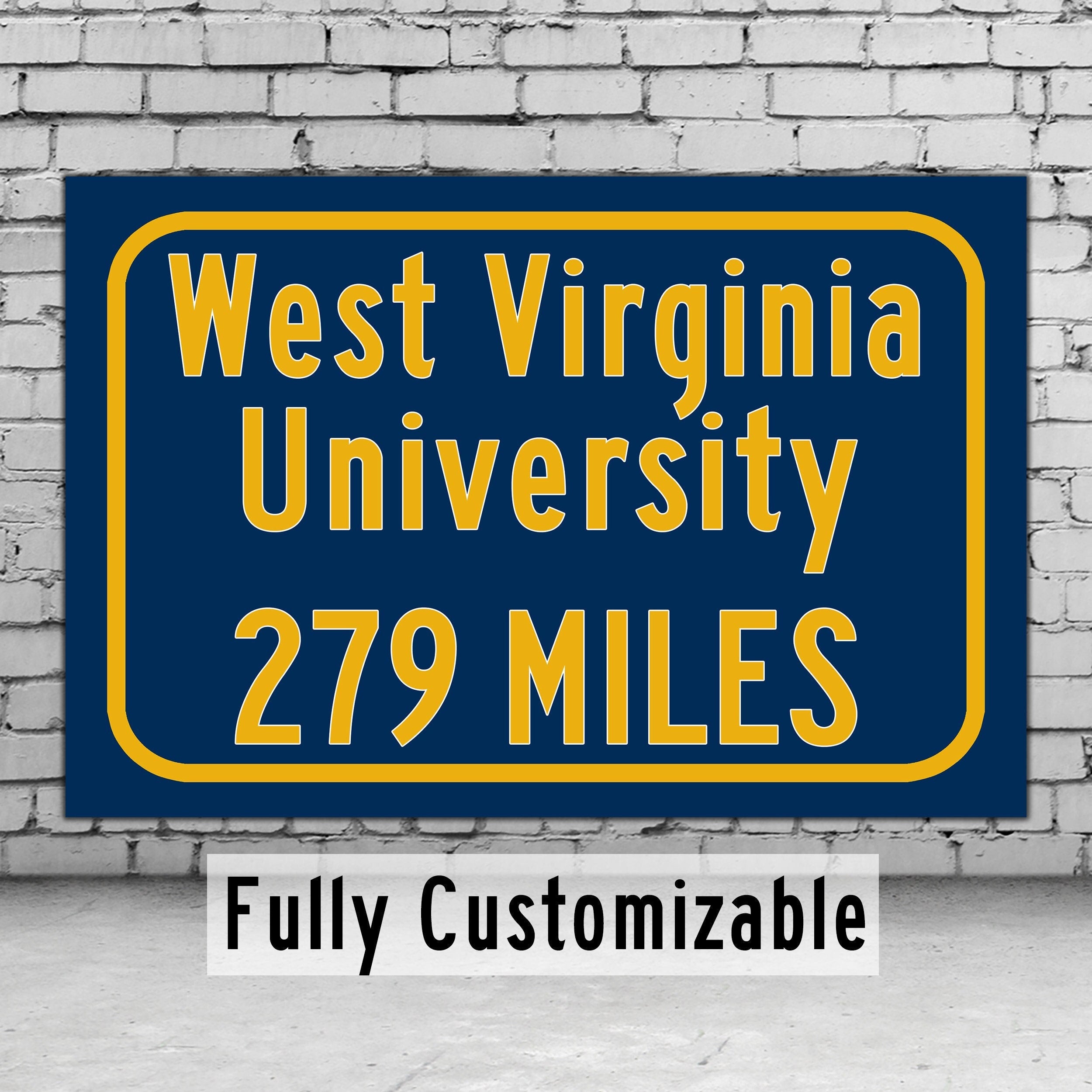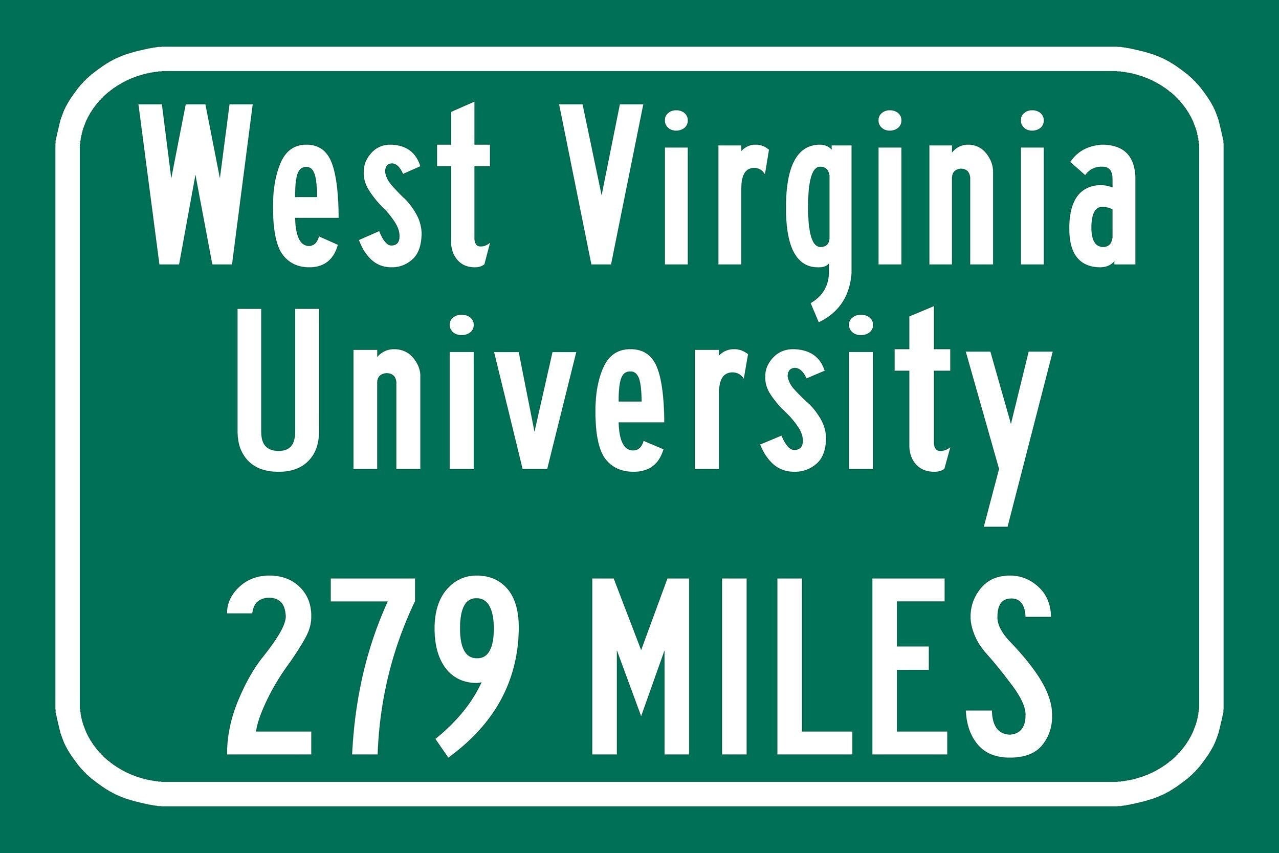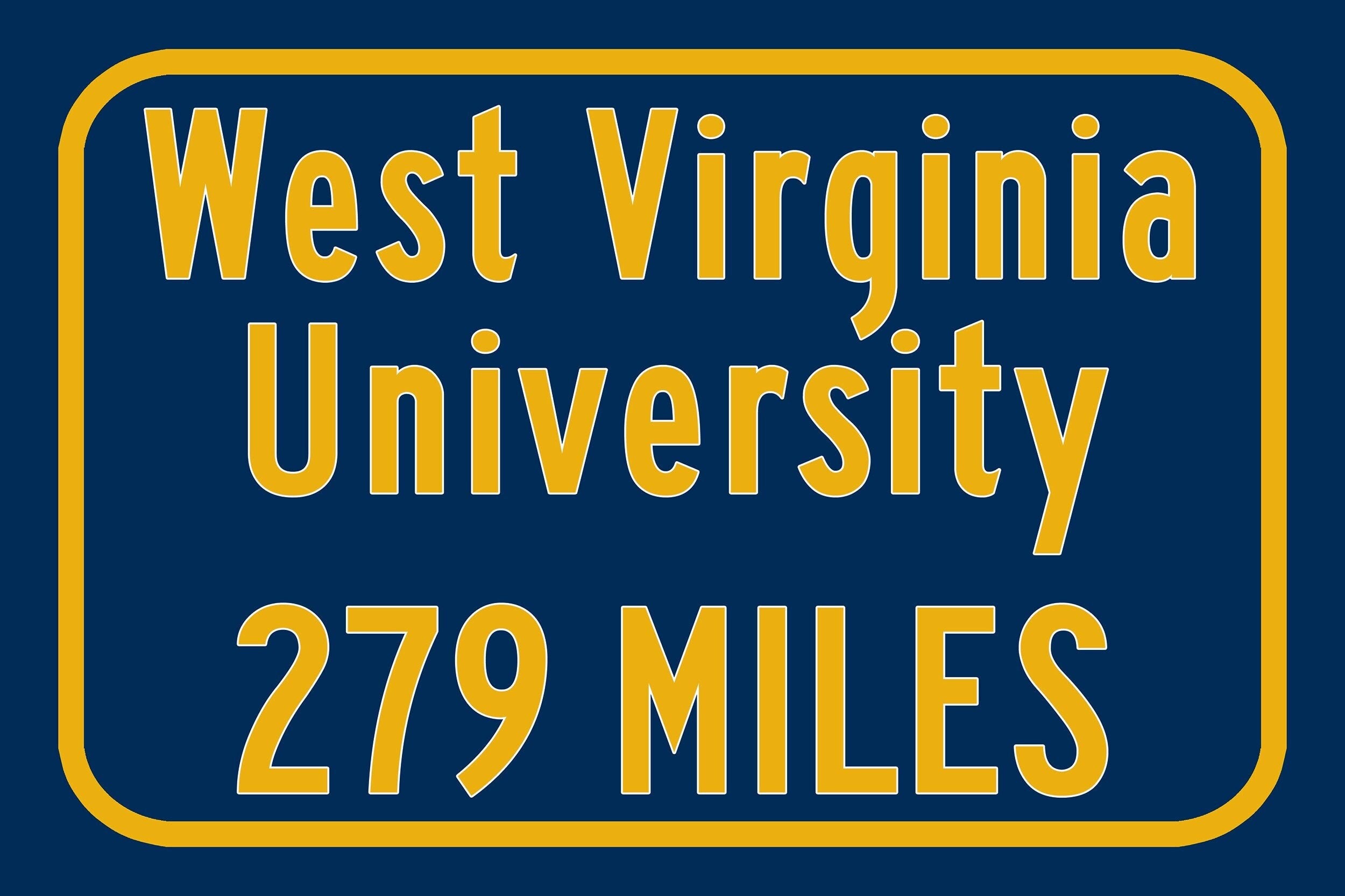 Personalized Highway Distance sign to West Virginia University / Morgantown, WV / Mountaineers /