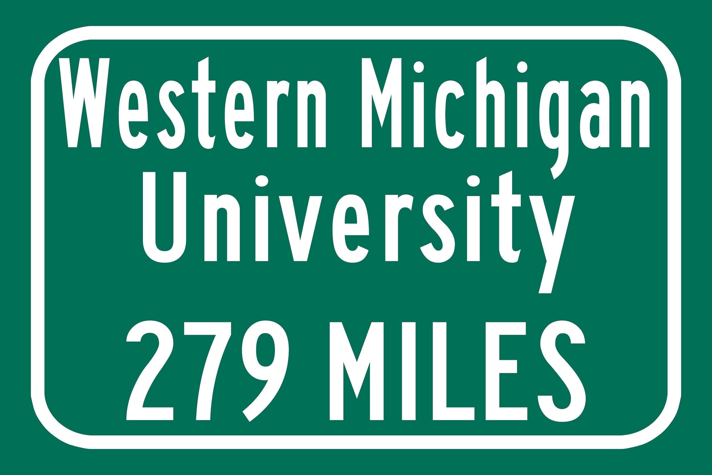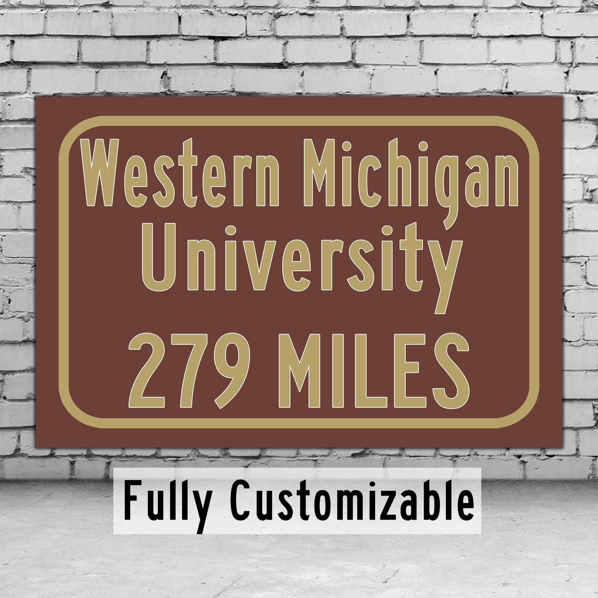 Western Michigan University / Custom College Highway Distance Sign / Western Michigan Broncos / Kalamazoo Michigan