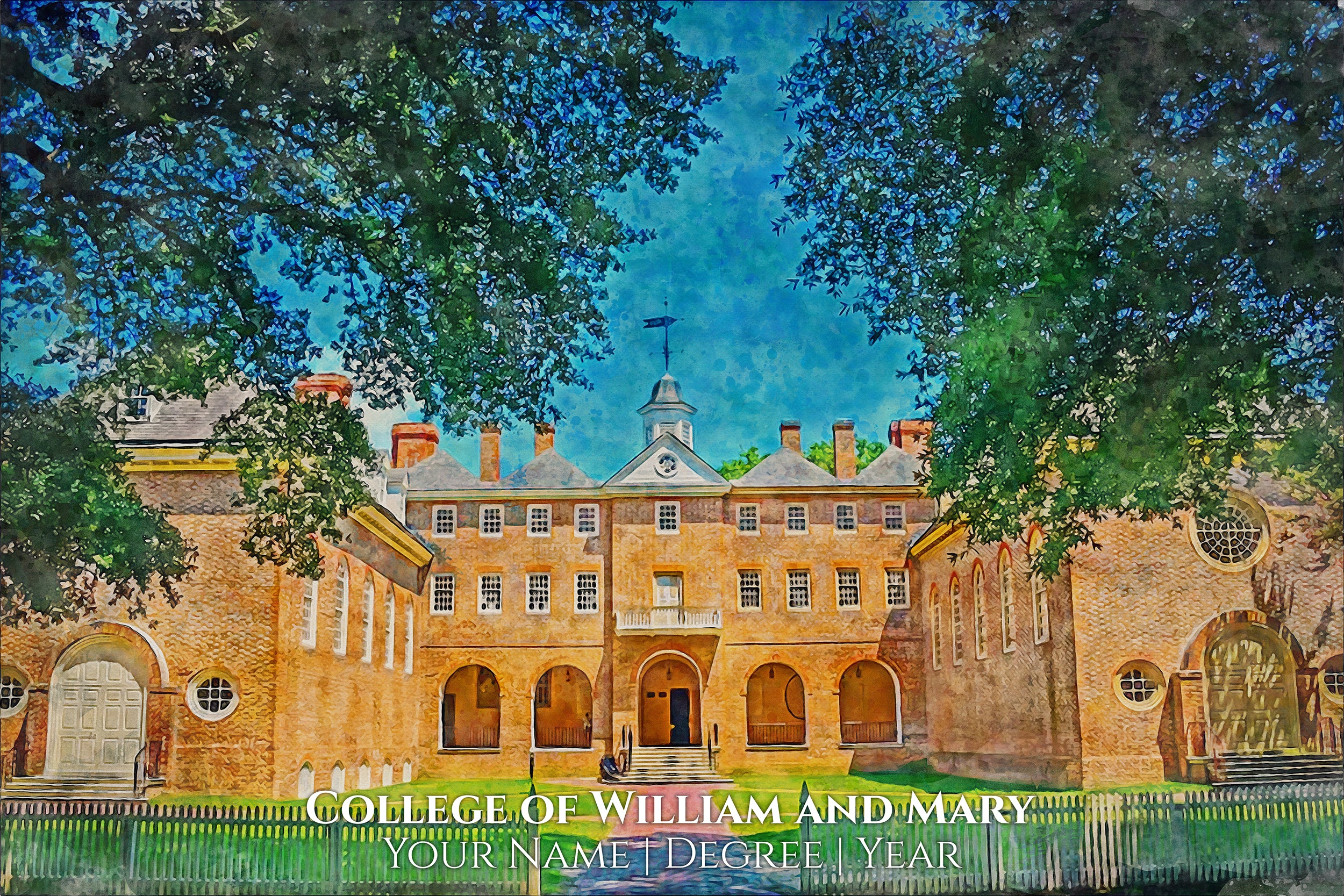 You will love these watercolor digital prints of William and Mary. Perfect for a graduation gift. These make wonderful gift for William and Mary, graduates, and fans. Feel free to customize it as well when you check out. We will send a proof for you to approve before we print so please check your email about 24hrs after you order