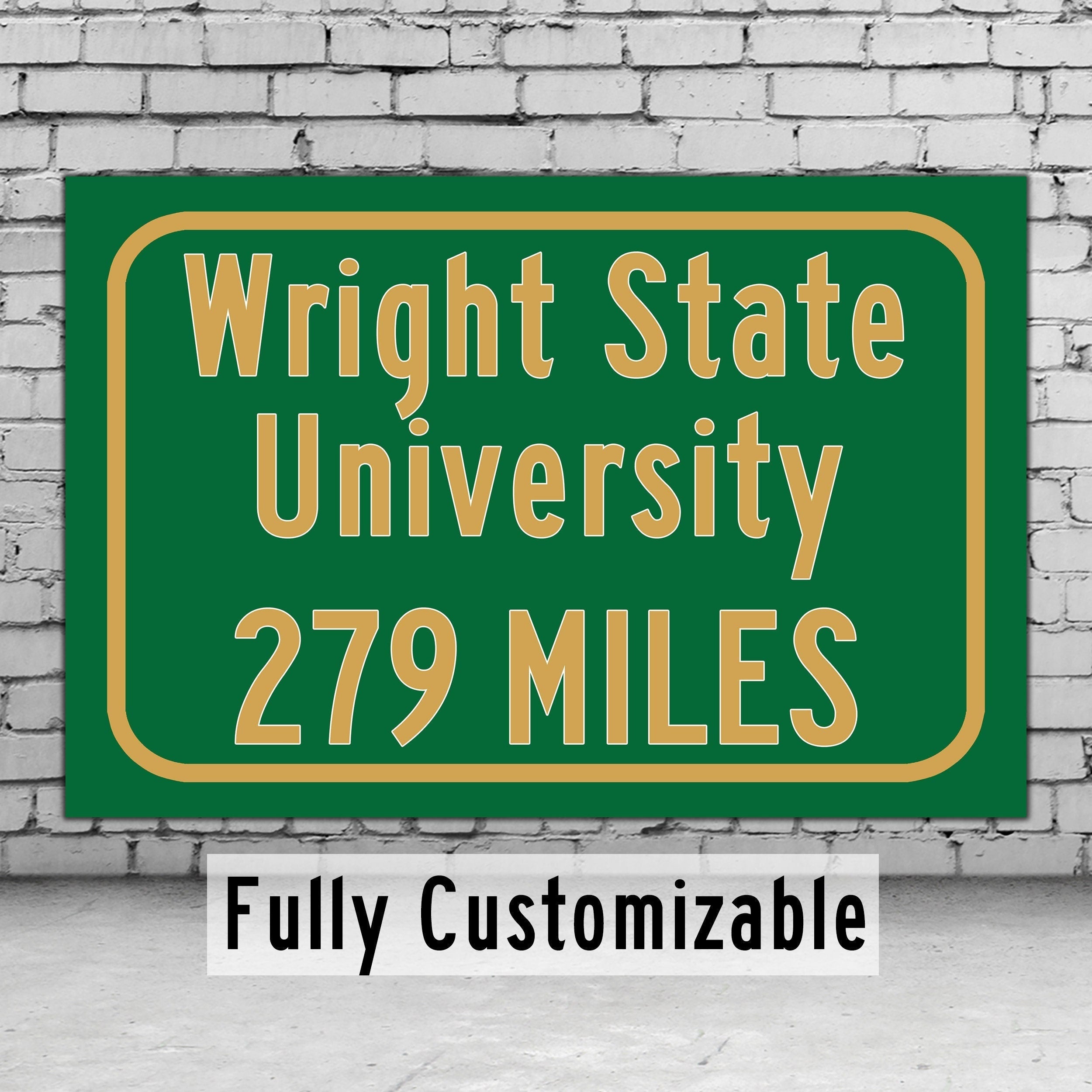 Personalized Highway Distance sign to Wright State University / Dayton Ohio / Wright State Raiders